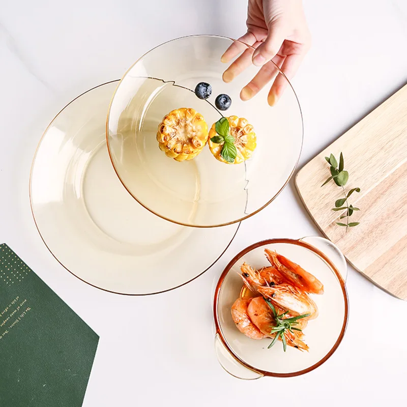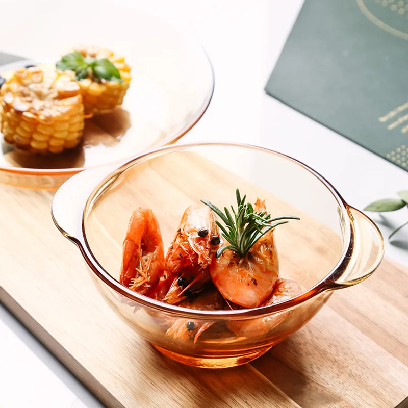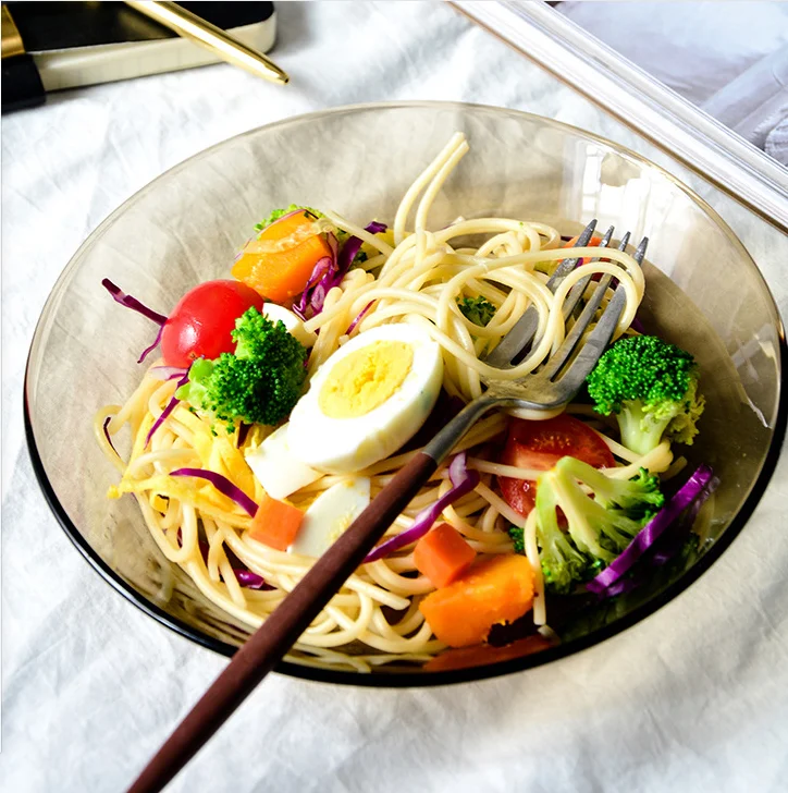 Észak -Európai Barna Üveg Tál Dupla Fül Saláta Lemezek Tál Otthoni Többfunkciós Ramen Tál Leves Tálak És Tányérok