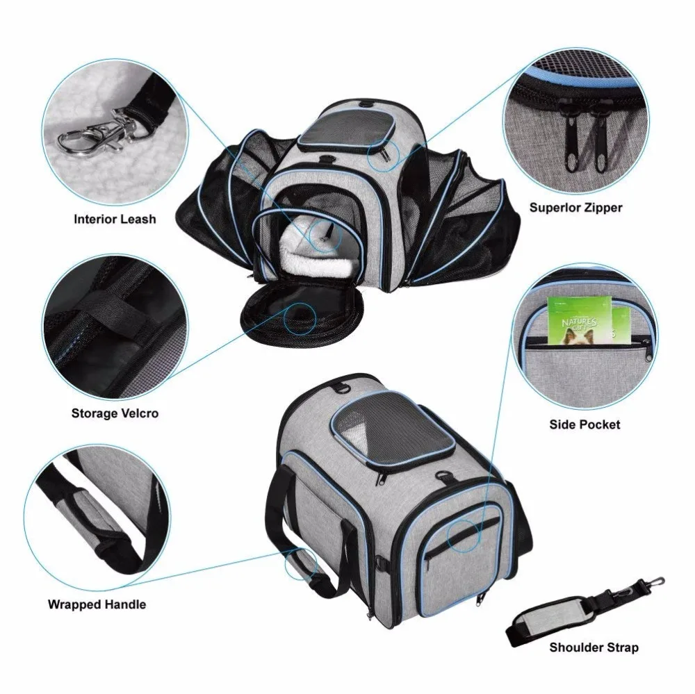Etin Háziállat -Fuvarozók Kibővíthető Kutya Táska Kölyökkutya Kocsi Utazó Táska Kutya Hordozók Kedvtelésből Tartott Macska Kibővített Táskák Táskák Kis Állatokhoz