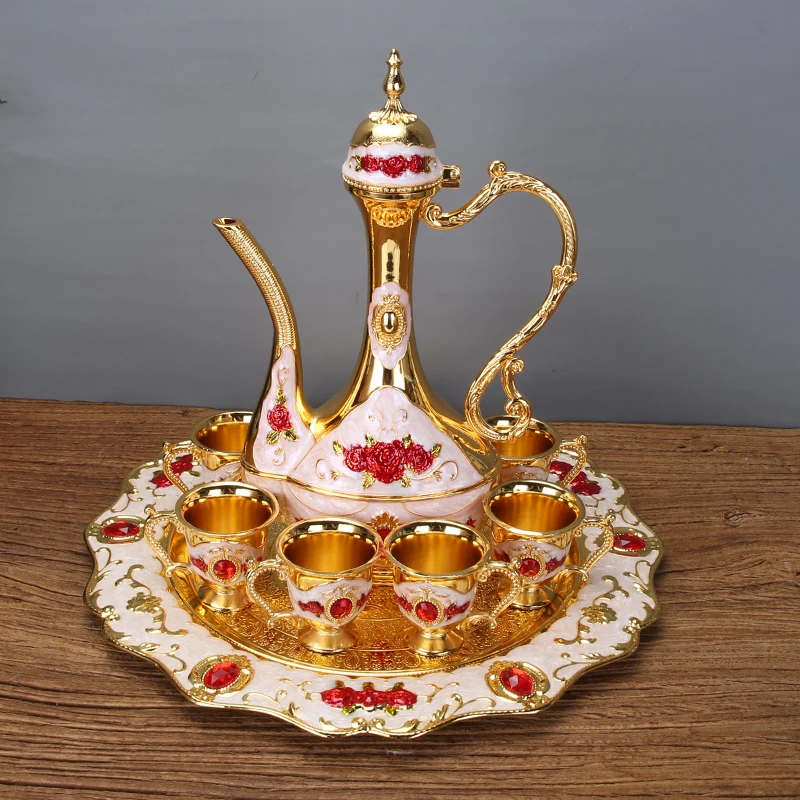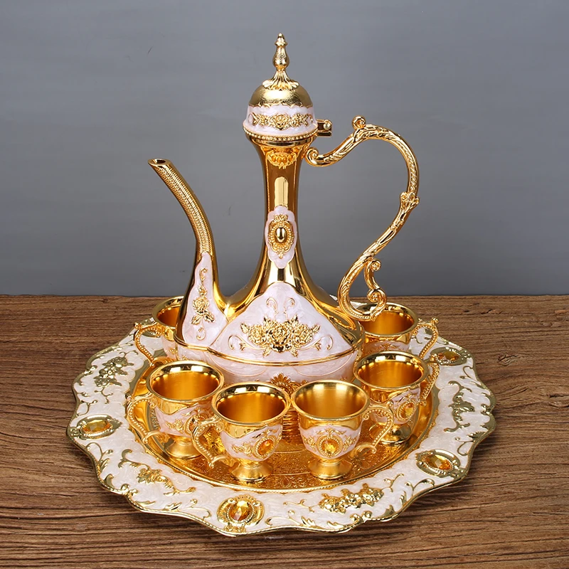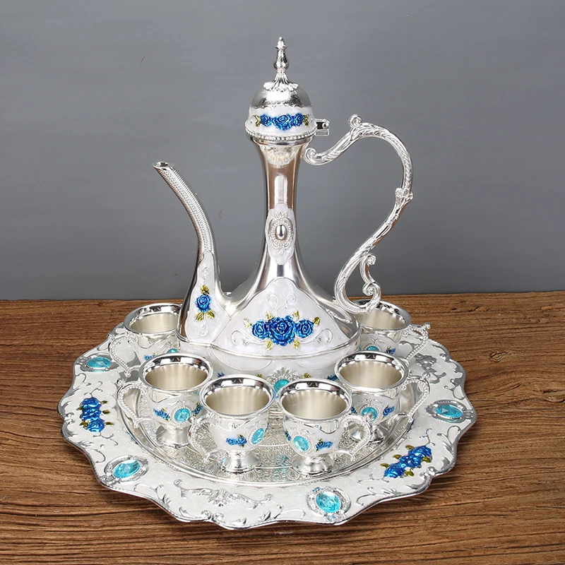 Európai Cinkötvözet Teakészletek Arany És Kék Színű Fém Boros Teakészlet Italok Kiváló Minőségű Otthoni Ivó Kiegészítők