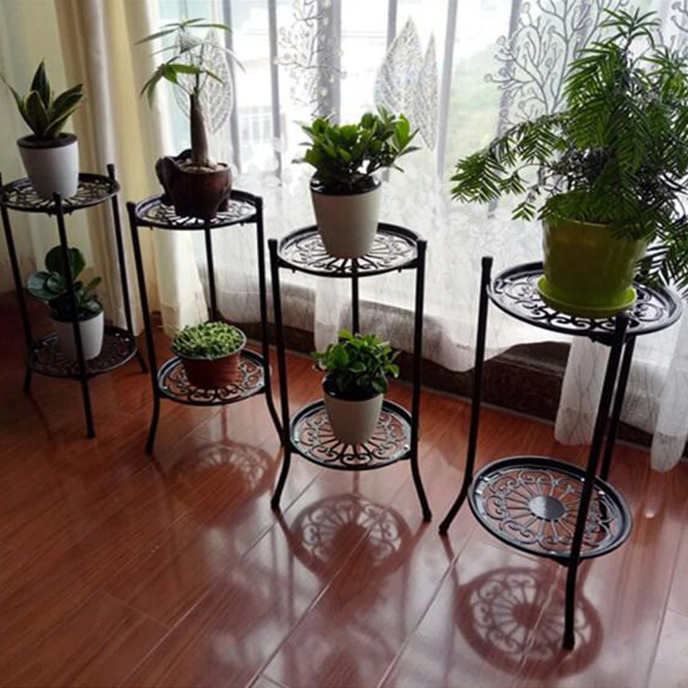 Európai Egyszerű Stílusú Többszintű Kovácsoltvas Virág Edény Állvány Erkély Nappali Stb. Dekorációs Eszközök