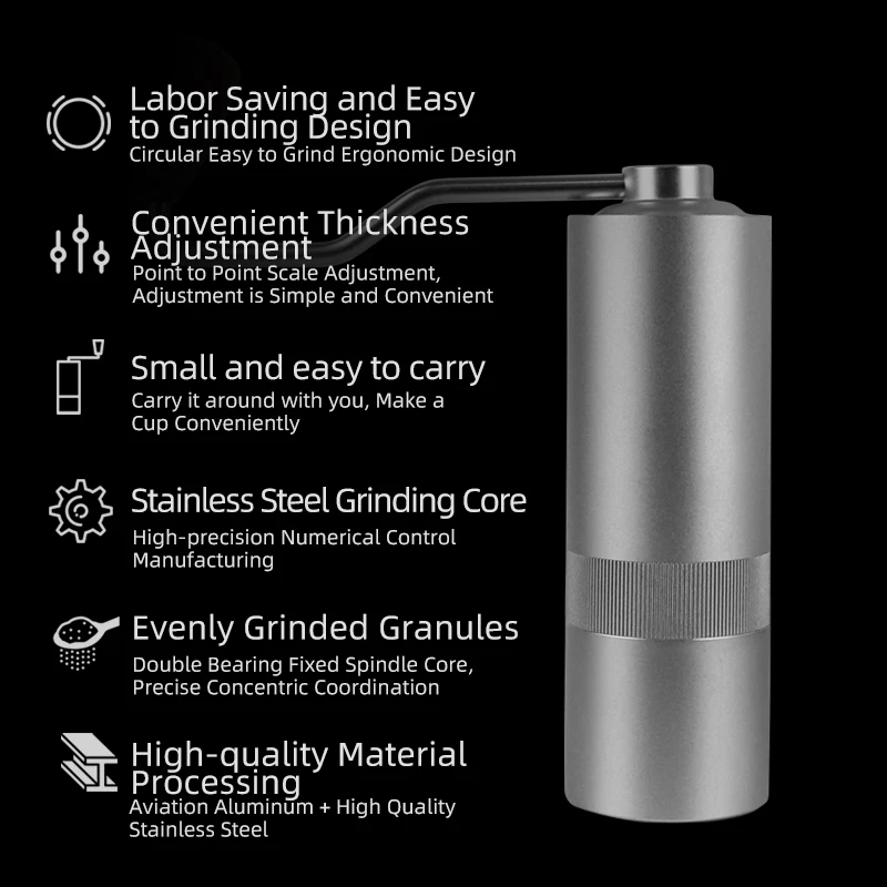 Ezüst Kávécsiszoló Mini Rozsdamentes Acél Kézi Kézi Kézzel Készített Kávébab Burrák Malom Konyhai Szerszámcsiszolók