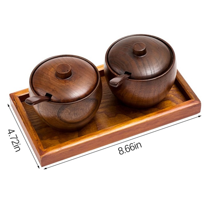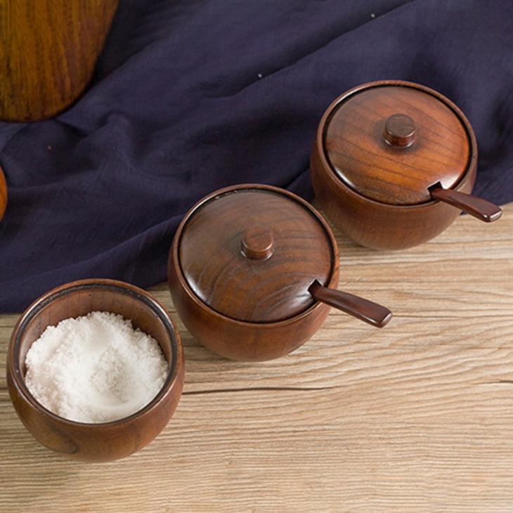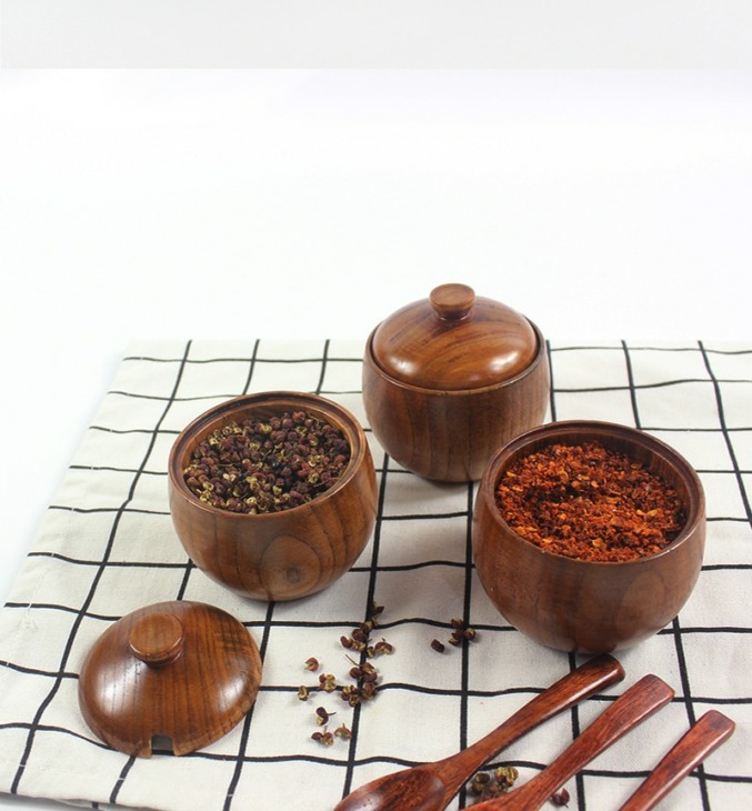 Fa Fűszeres Edény Fedél Cukor Tál Sóspapros Ízesítő Doboz Tartály Japán Kanál Alapú Fűszer Doboz Konyhai Szerszám