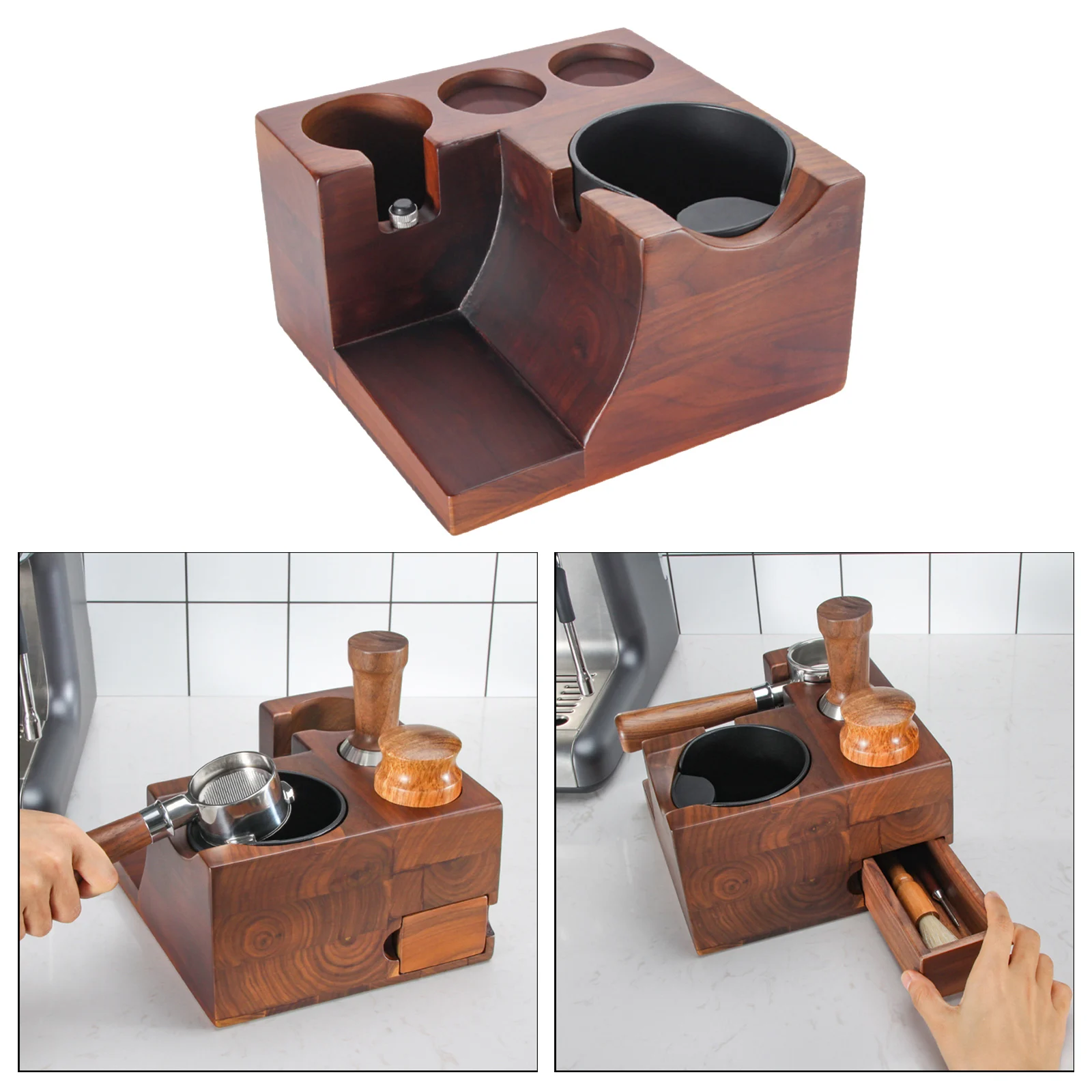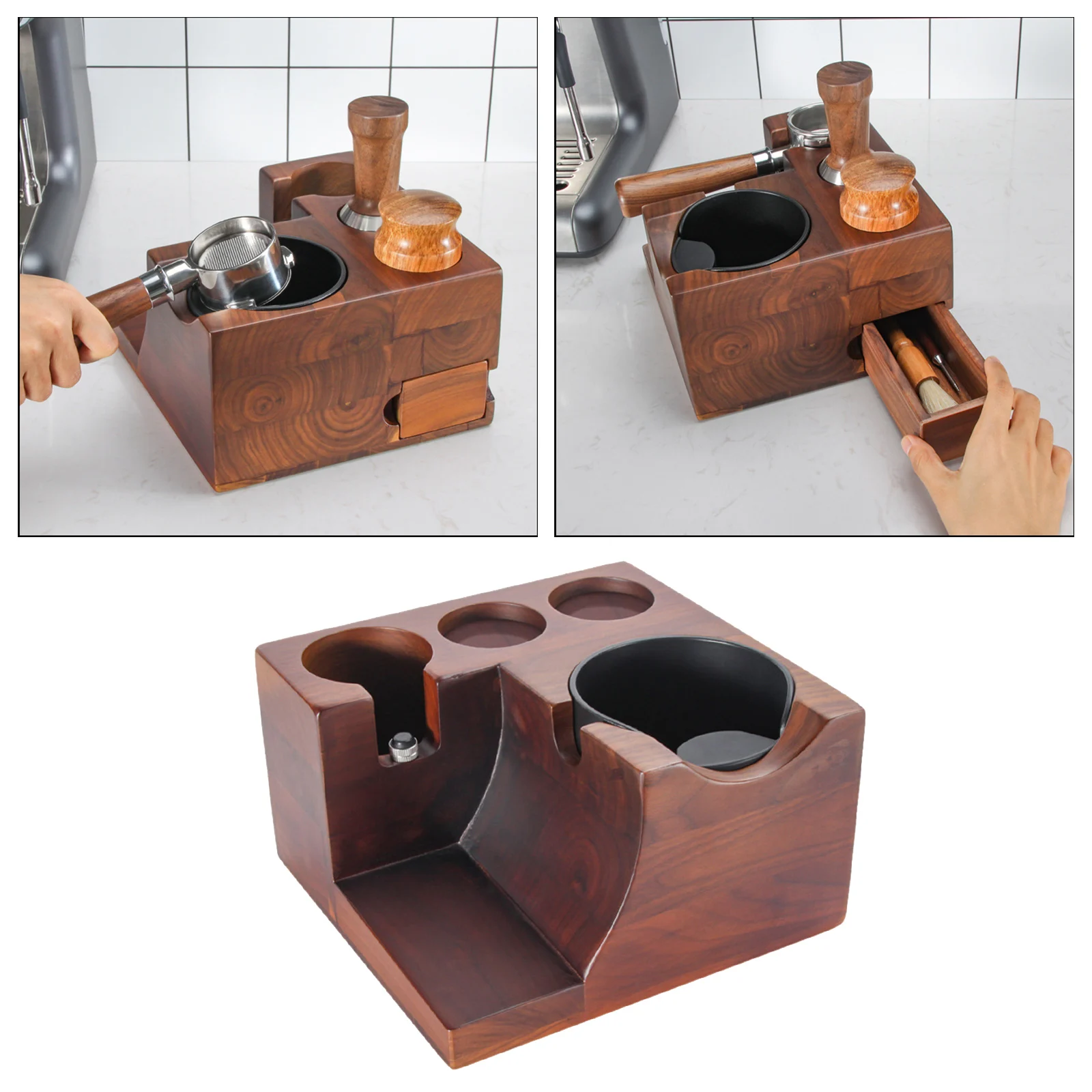 Fa Kávé Szűrő Tamper Tartó Espresso Mat Állvány Salak Doboz Kiegészítők