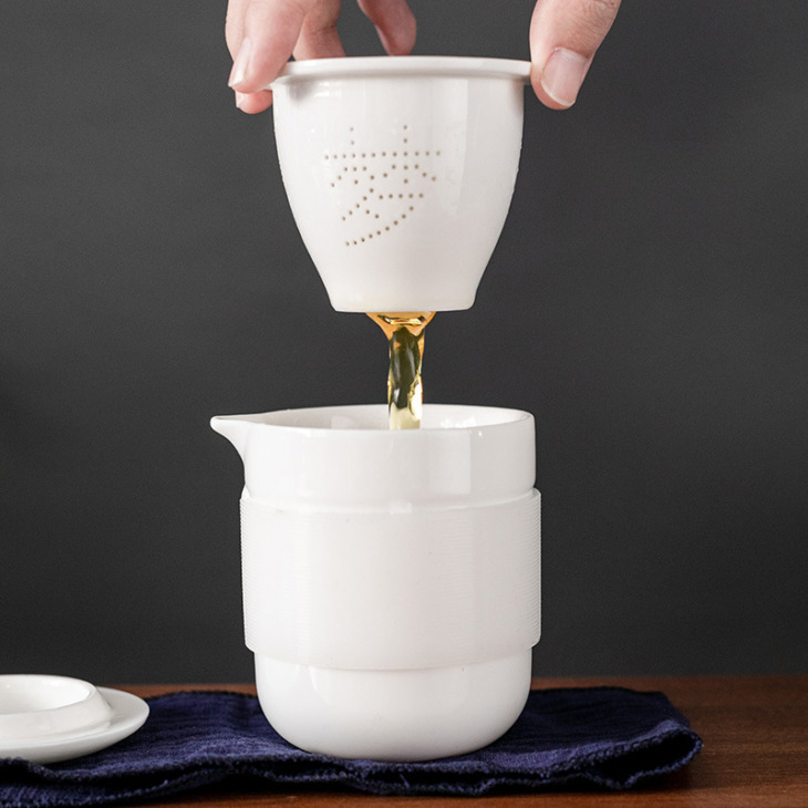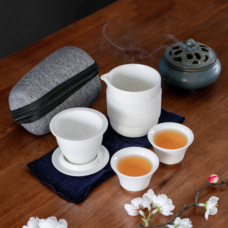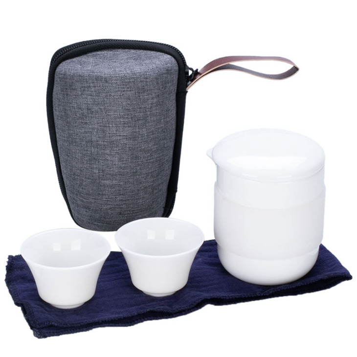 Fehér Kerámia Teáskanna Kínai Hordozható Kung Fu Tea Szett, Utazási Teáscsésze Táskával Gaiwan Teakészletek Hordozható Utazási Teakészletek Italkészletek