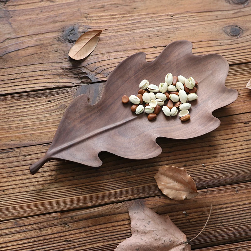 Fekete Dió Tányér Eredeti Kézzel Készített Levél Alakú Snack Dió Torta Gyümölcslemez Kreatív Rönk Tálca Fa Minőségi Tálalás Asztali Edények