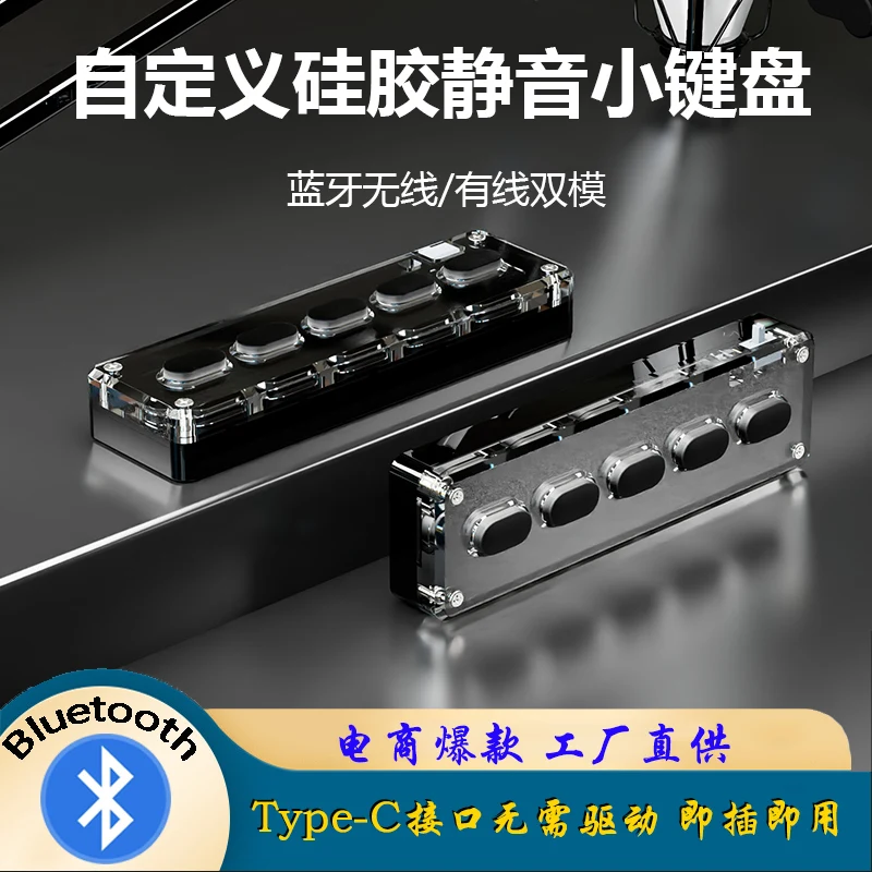 Felvétel Könyv Néma Vezeték Nélküli Kézi Billentyűzet 5 Key Silent Silicone Mini Testreszabott Parancsikon