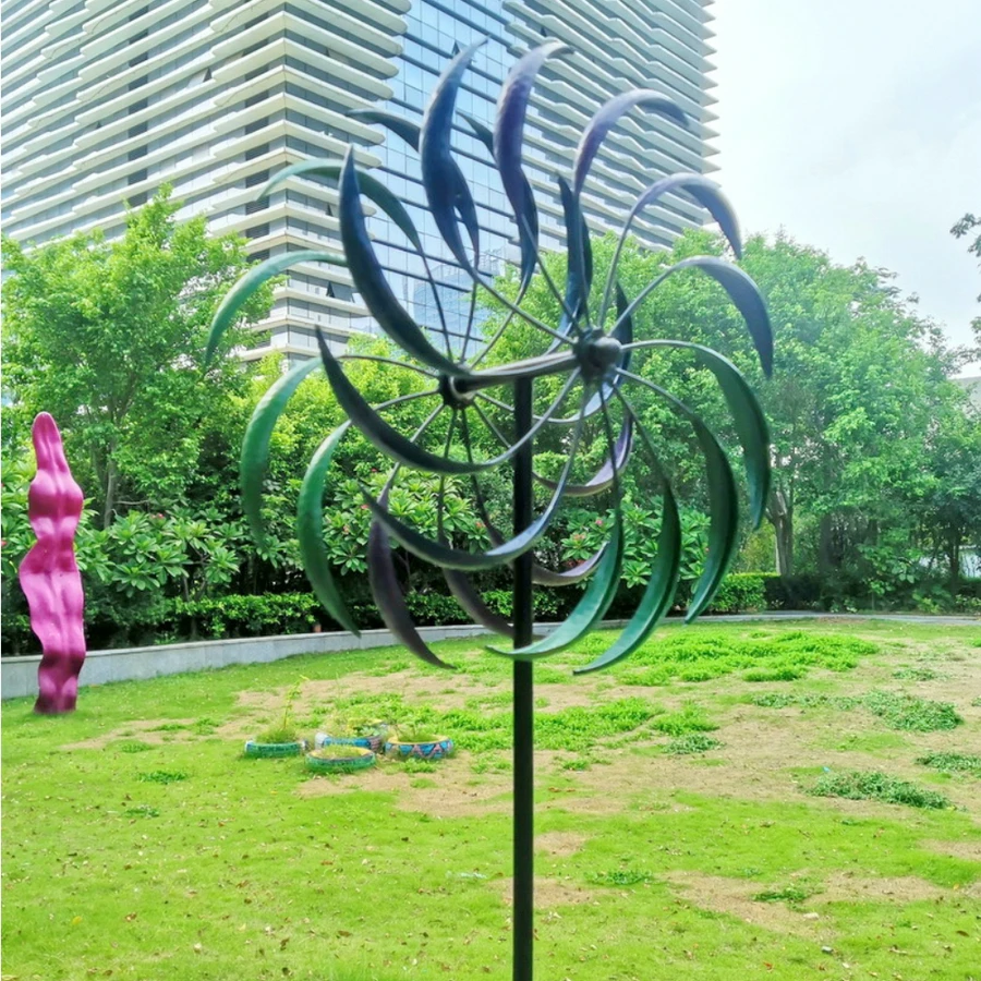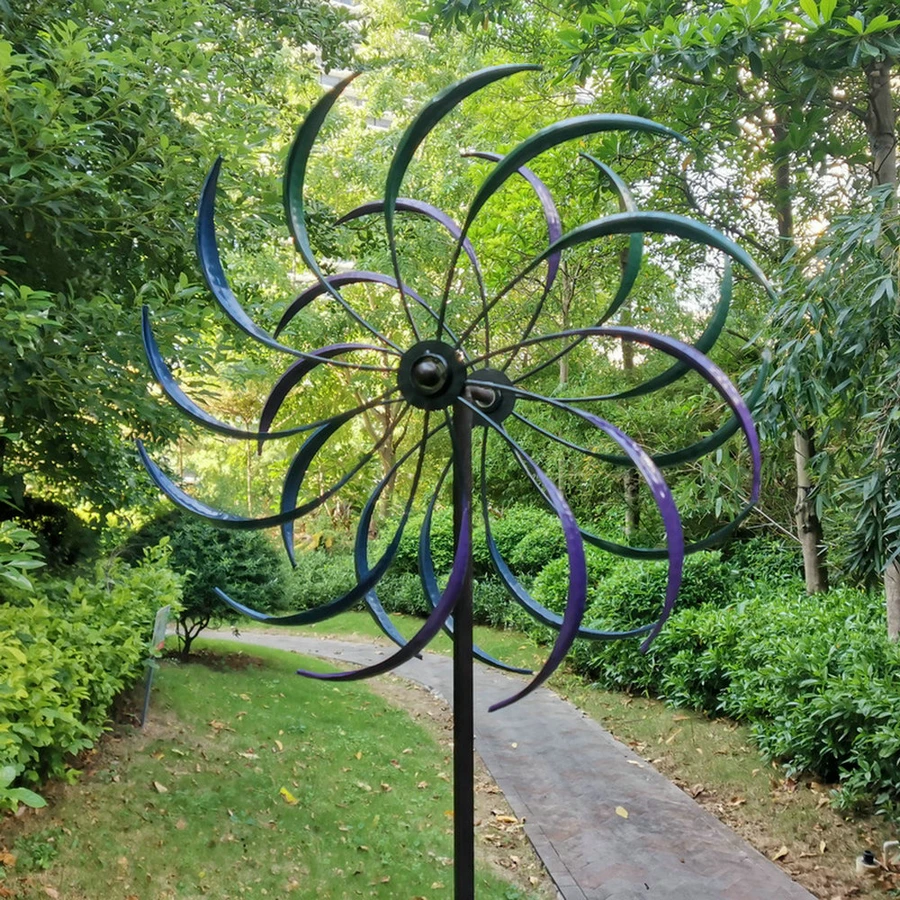 Fém Szélmalom Színes Fűzfálalevelek Kettős Irányú Szél Fonó Kültéri Kerti Gyep Dekoráció Forgó Díszek