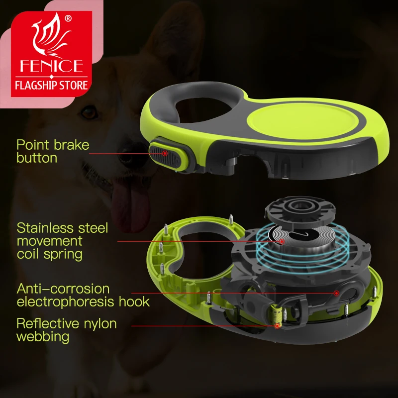 Fenice Pet Leash Auto Visszahúzható Kutya Leash Pet Dog/Cat Kupok Autományos Vonatkozó Pet -Tépképes Körök Leashes Pet -Készletek