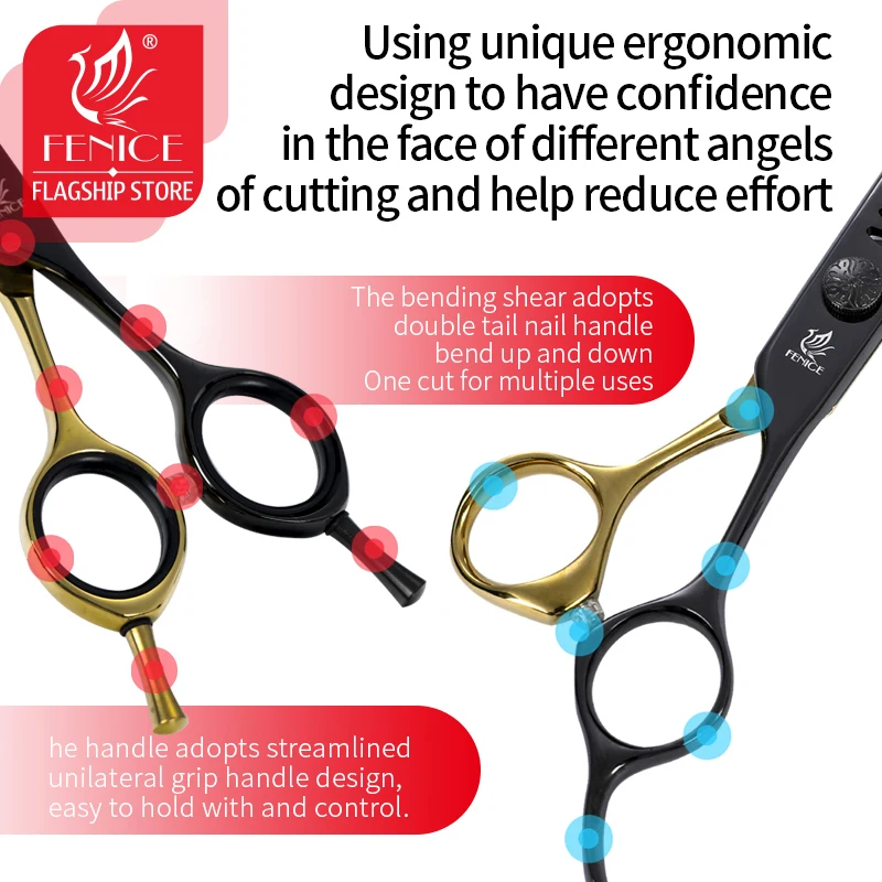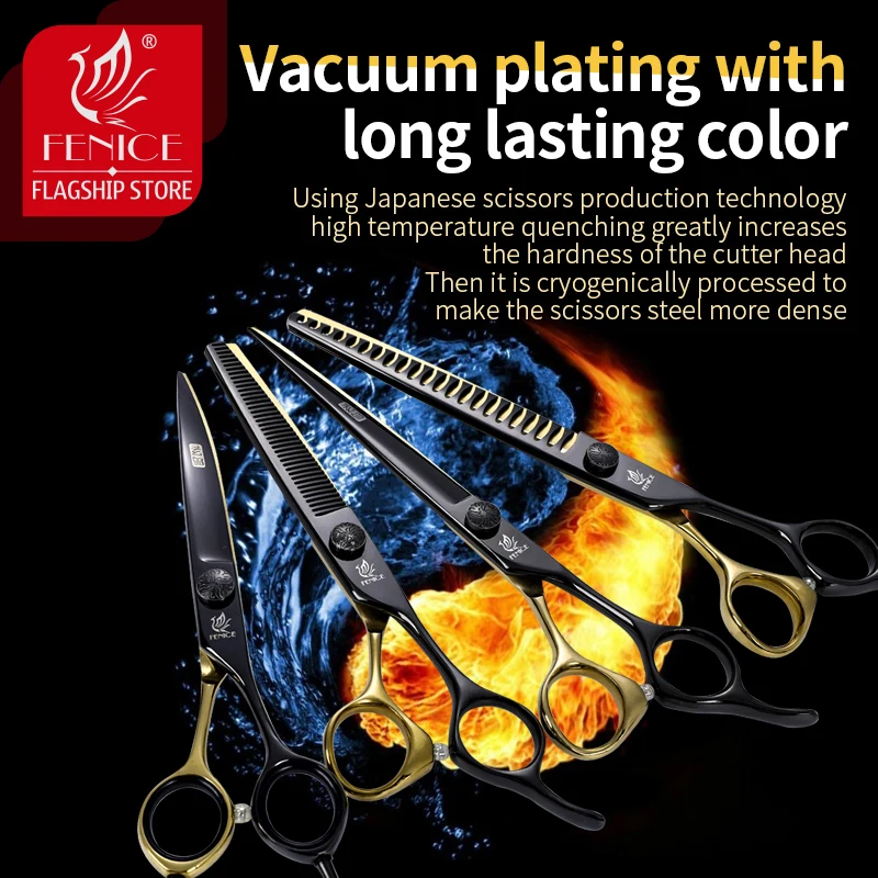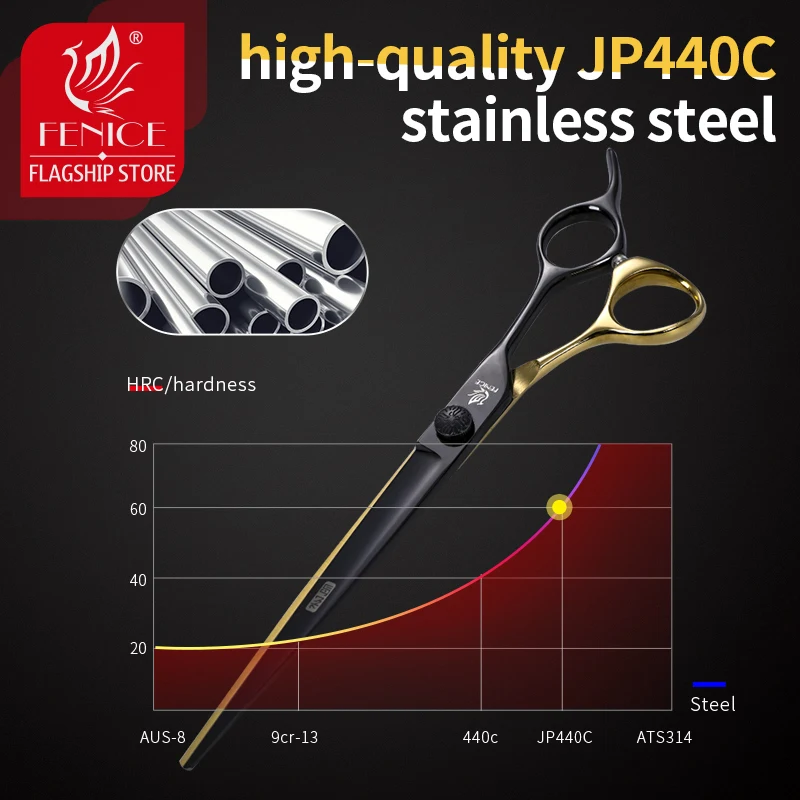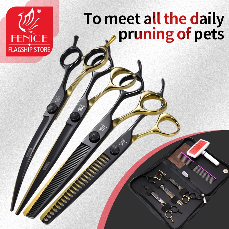 Fenice Pet Professional Kutya Ápolási Olló Vágó Ívelt Vékony Nyírókészlet Japán 440C Ollókészlet Állati Kozmetikusok Számára