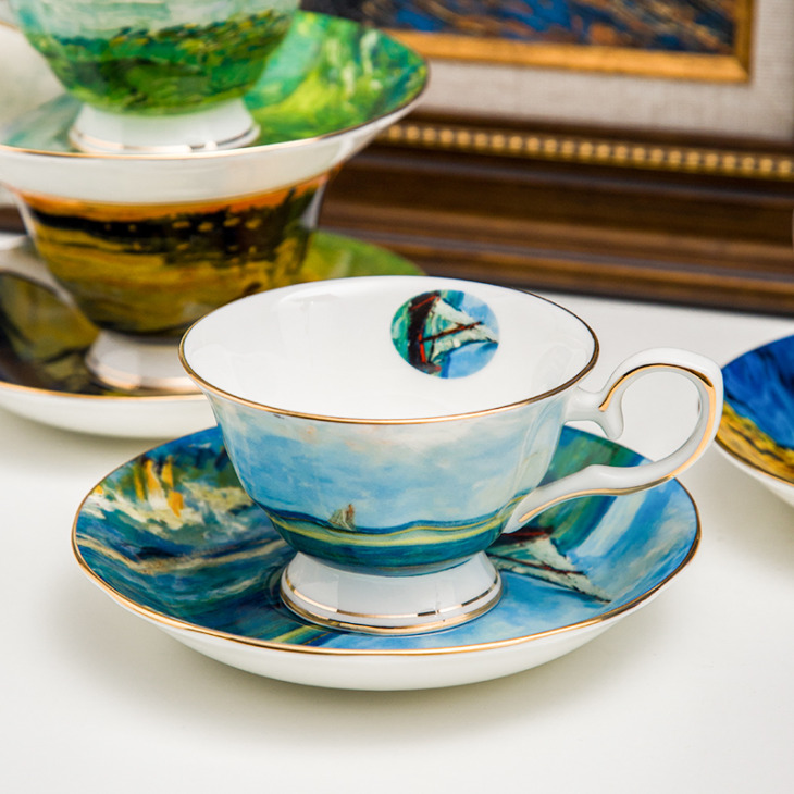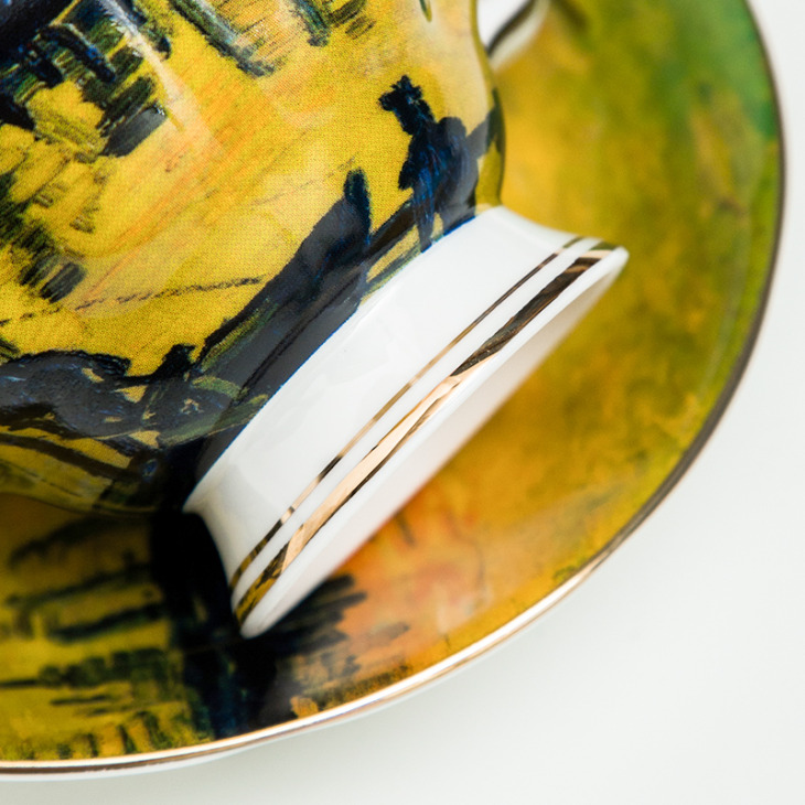 Finom Csont Kávéfőző Csészealj Van Gogh Teakészlet Kerámia És Üzleti Kávéscsésze És Csészealj