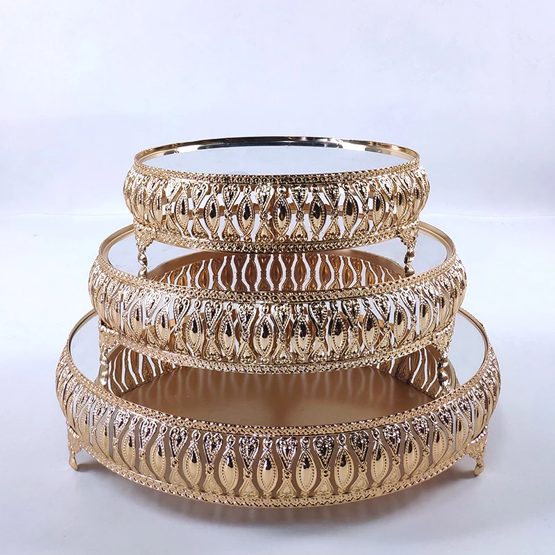 Forró Új Érkezés 1-5 Darabos Arany Tükör Torta Állvány Kiváló Minőségű Gallinalizálási Fém Esküvői Torta Állvány Sütemény Tálca