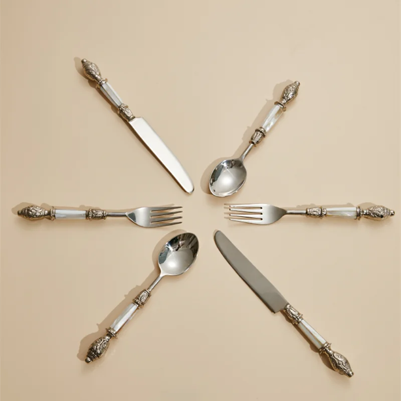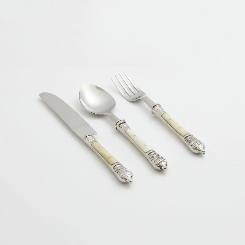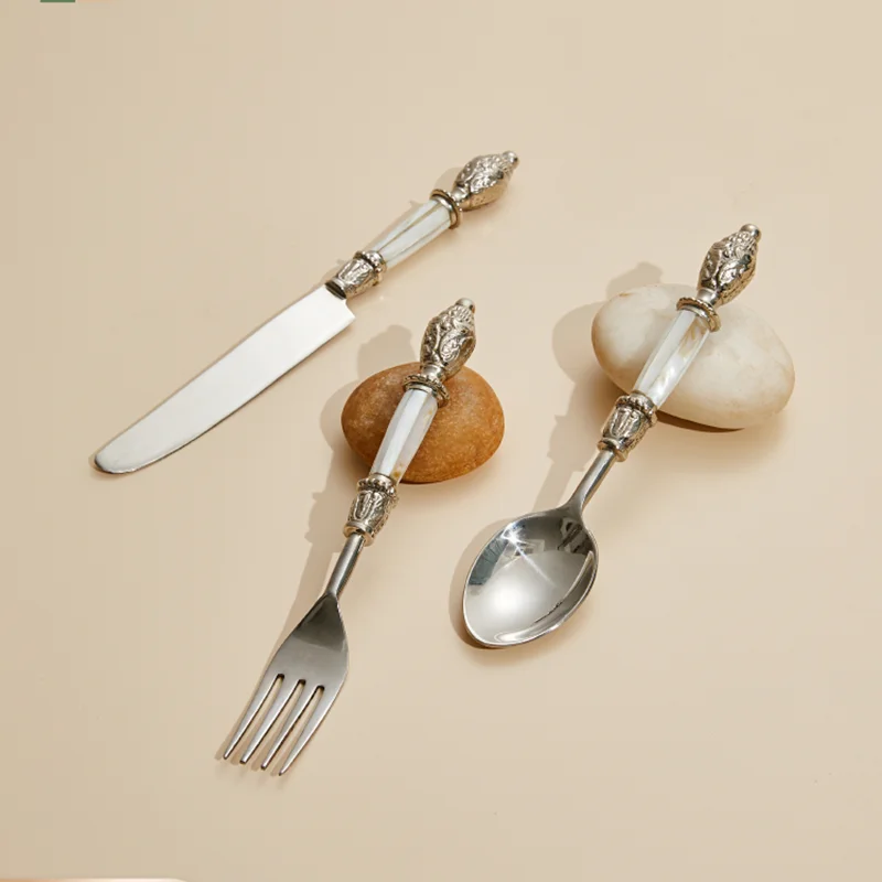 Francia 3Pcs Étkészlet Rozsdamentes Acél Evőeszközök Tükör Ezüst Edénykés Villa
