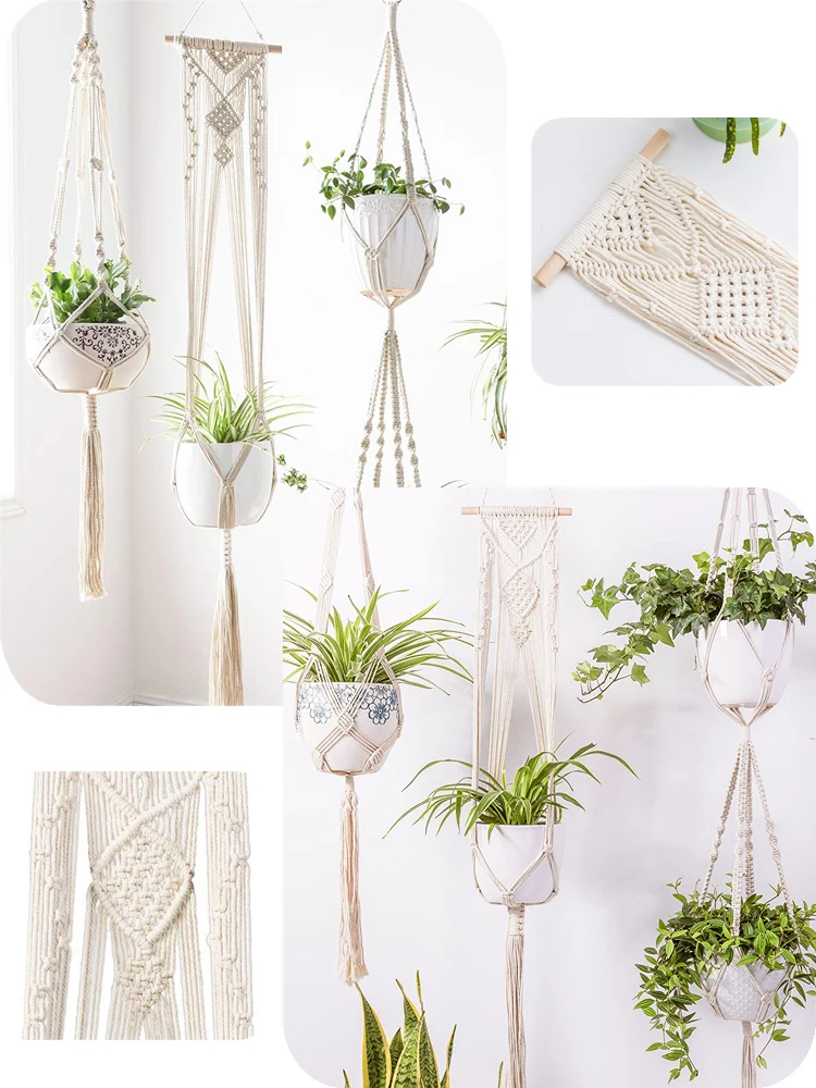 Függő Kosarak 100% Kézzel Készített Növénytartó Makrame Növény Virágcserapár Nettó Fogas A Fali Dekoráció Ültetvénye
