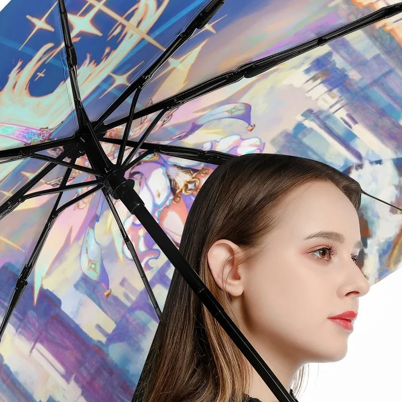 Genshin Ütközés Nyomtatott Esernyő Eső Nők Automatikus Három Összecsukható Napvédő Férfi Hordozható Parasol