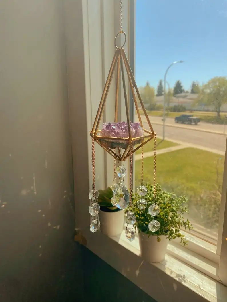 Geometriai Napsütő Ametiszt Klaszter /Napsütő Kristály /Prizma Lógó /Otthoni Dekoráció /Ametiszt