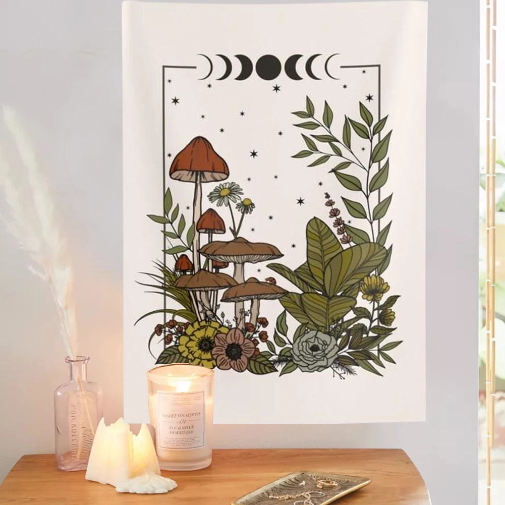 Gomba Gobelin Falfal Lógó Boho Fali Vintage Dekoráció Goblincore Természet Kárpit Boszorkány Gombák Fal Művészet