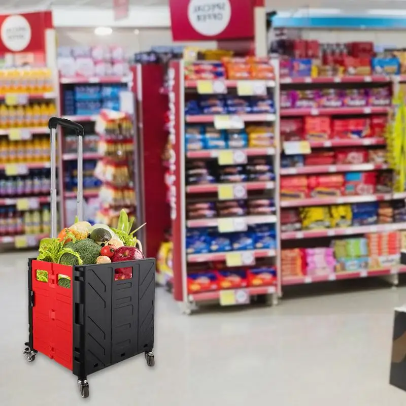 Gördülő Láda Kerekekkel Összecsukható Bevásárló Autó Nagy Teherbírású Kosár Teleszkópos Fogantyúval Élelmiszer -Bevásárló Iroda Számára