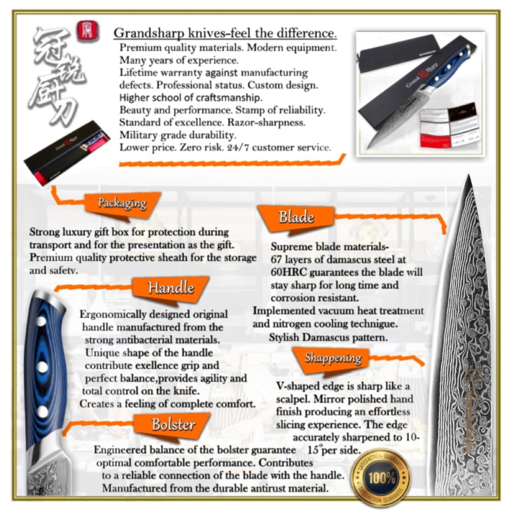Grandsharp 5 Hüvelykes Közüzemi Kés Damaszkusz Konyhai Kés 67 Rétegek Japán Damaszkusz Rozsdamentes Acél Vg-10 Főzőszerszámok Kések