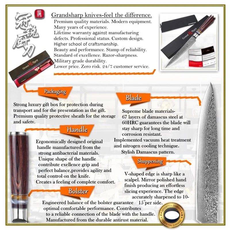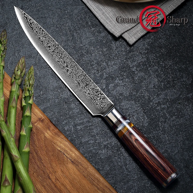 Grandsharp 8 ” Szeletelő Kés Séf Kés Damaszkusz Kések 67 Rétegek Japán Konyhai Kés Vg10 Acélhús Halak Lazac Sashimi