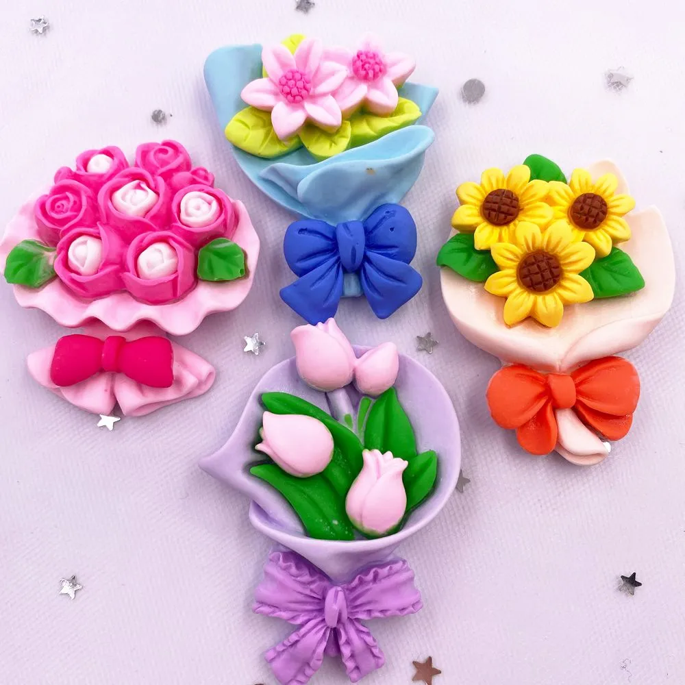 Gyanta Kawaii Színes Aranyos Nagy Virág Rózsák Napraforgó Tulipák Lapos Csokor Figura 4Db Scrapbook Diy Dekoráció Otthoni Kézművesség
