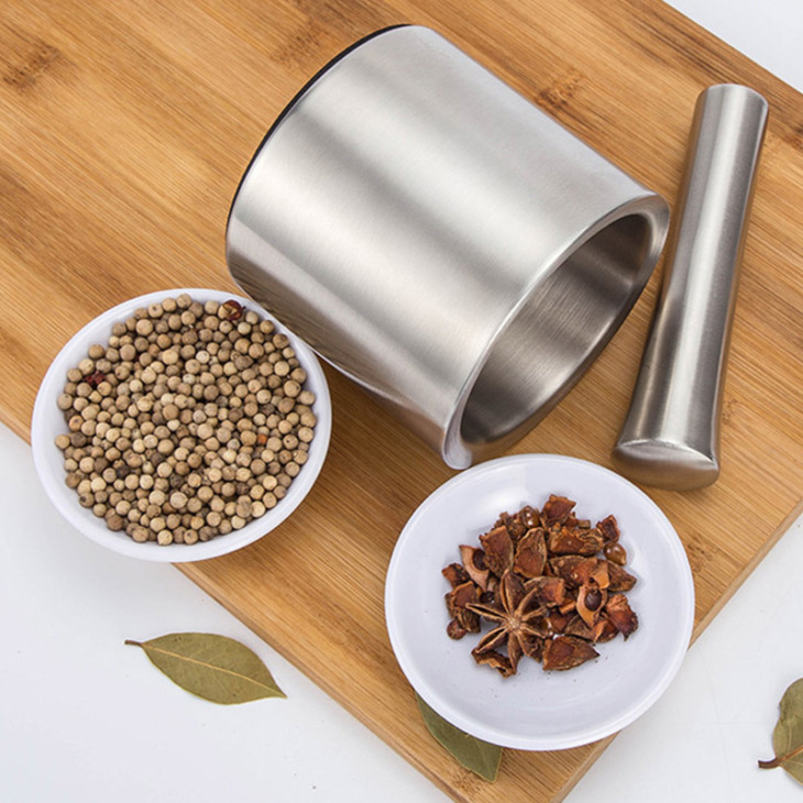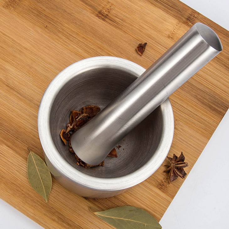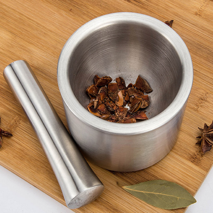 Habarcs- És Mozsártartó Készletek – 18/8 Szálcsiszolt Rozsdamentes Acél Kézi Fűszercsiszoló/ Gyógynövény Tál