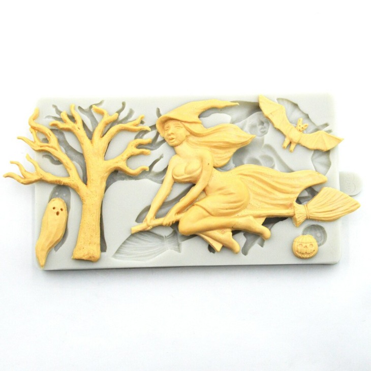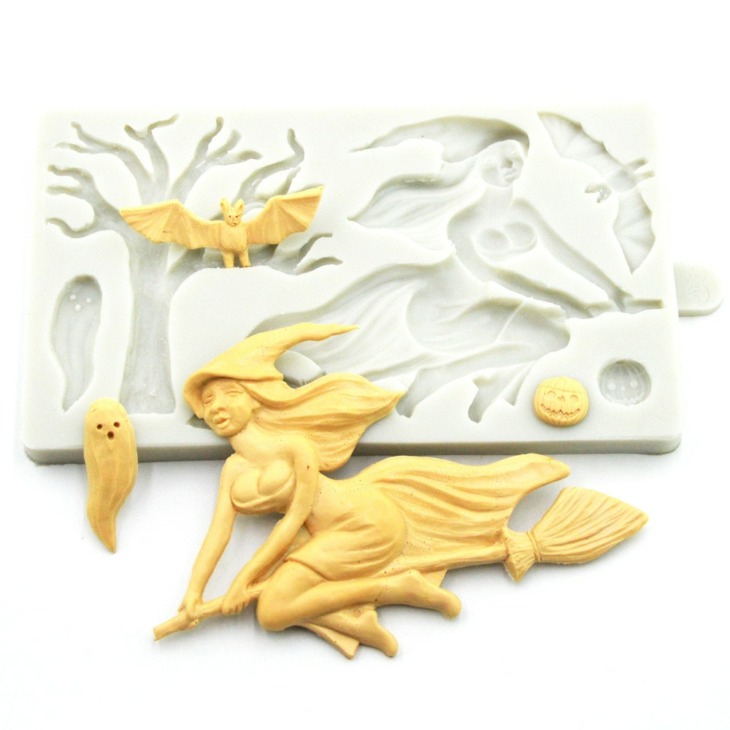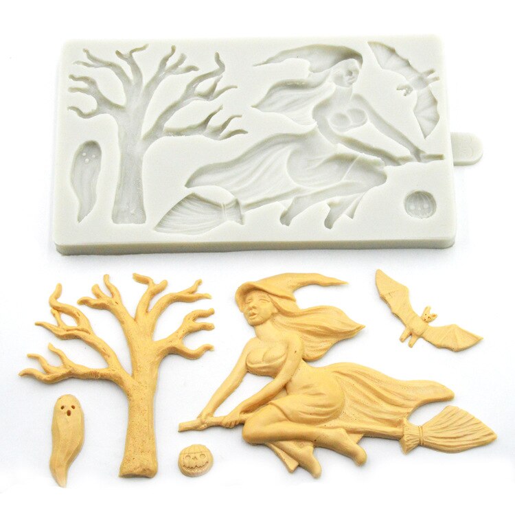 Halloween Boszorkány Szellem Denevér Tök Szilikon Penész Fondant Sütemény Penész Barkács Cukorkák Penész Torta Dekoratinig Szerszámok Sütemények