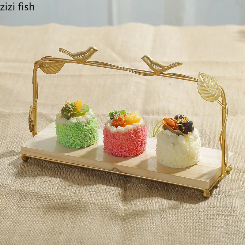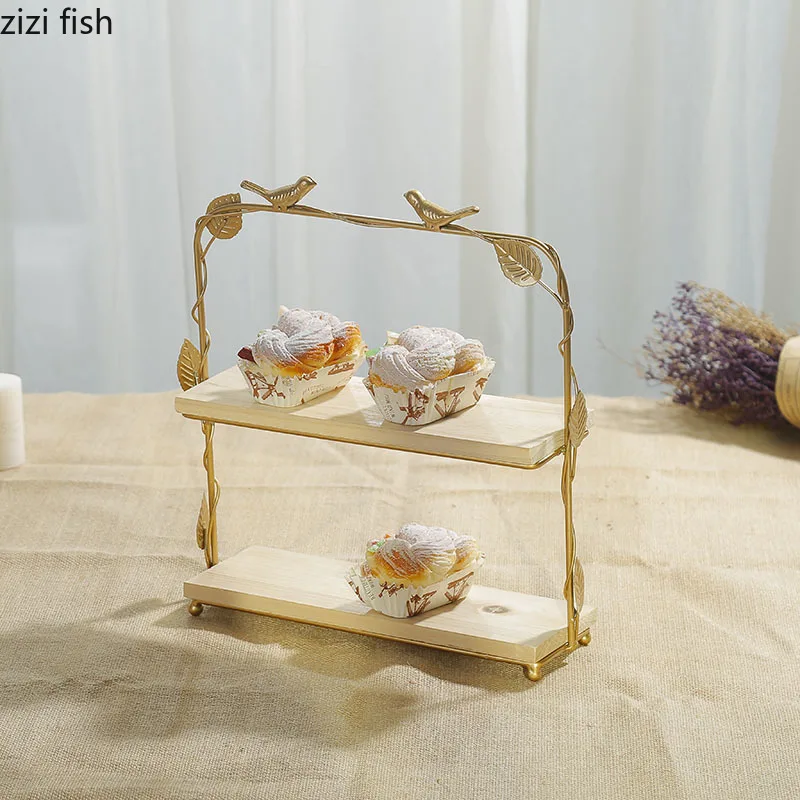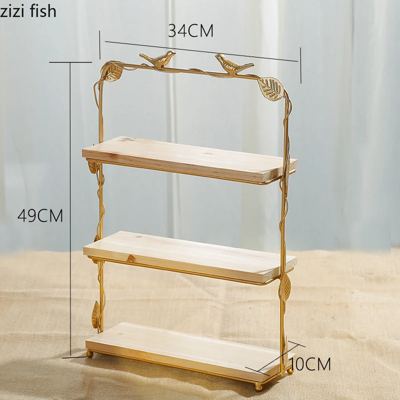 Három Rétegű Torta Állvány Aranyfogantyú Tálcák Dekoratív Tálalás Tálca Desszert Edény Tányérok Fa Tároló Szervező Polcok