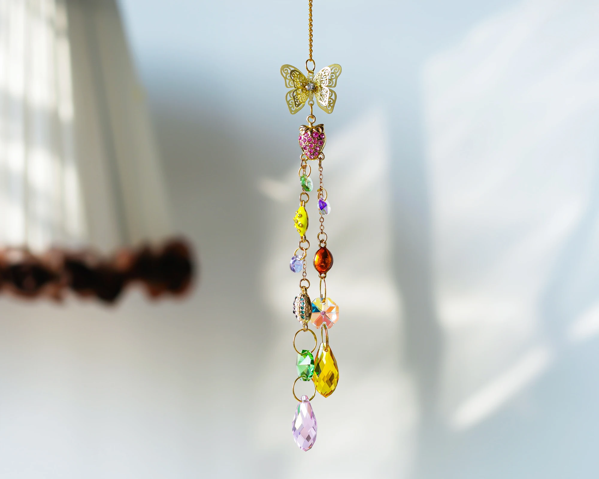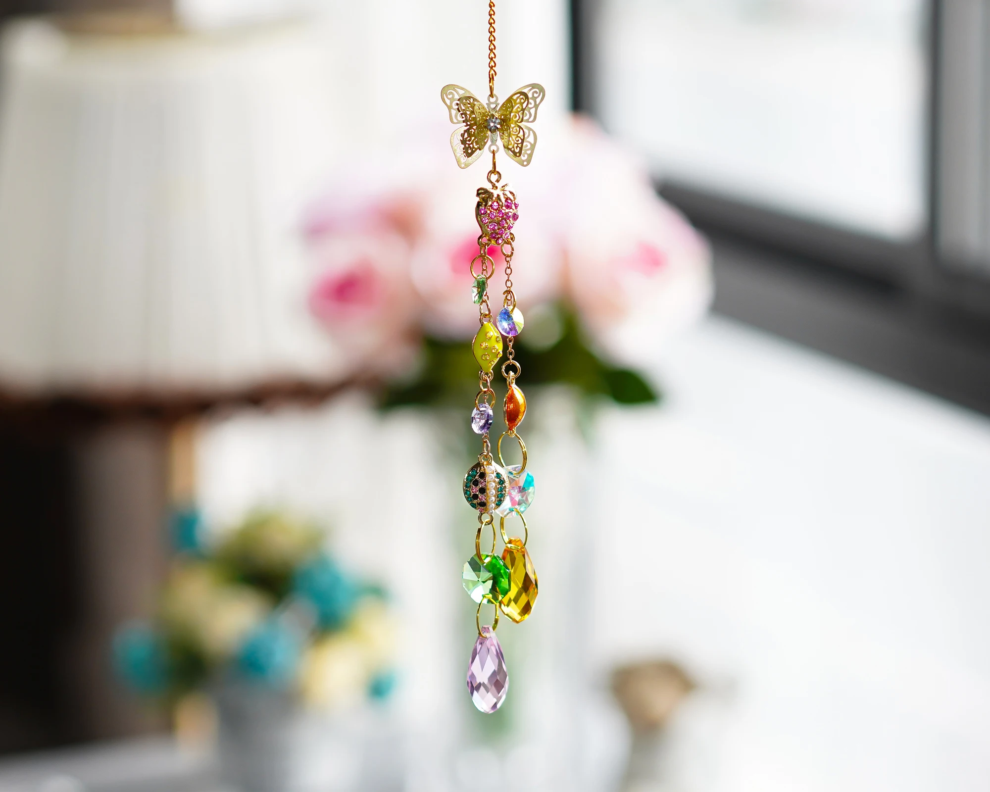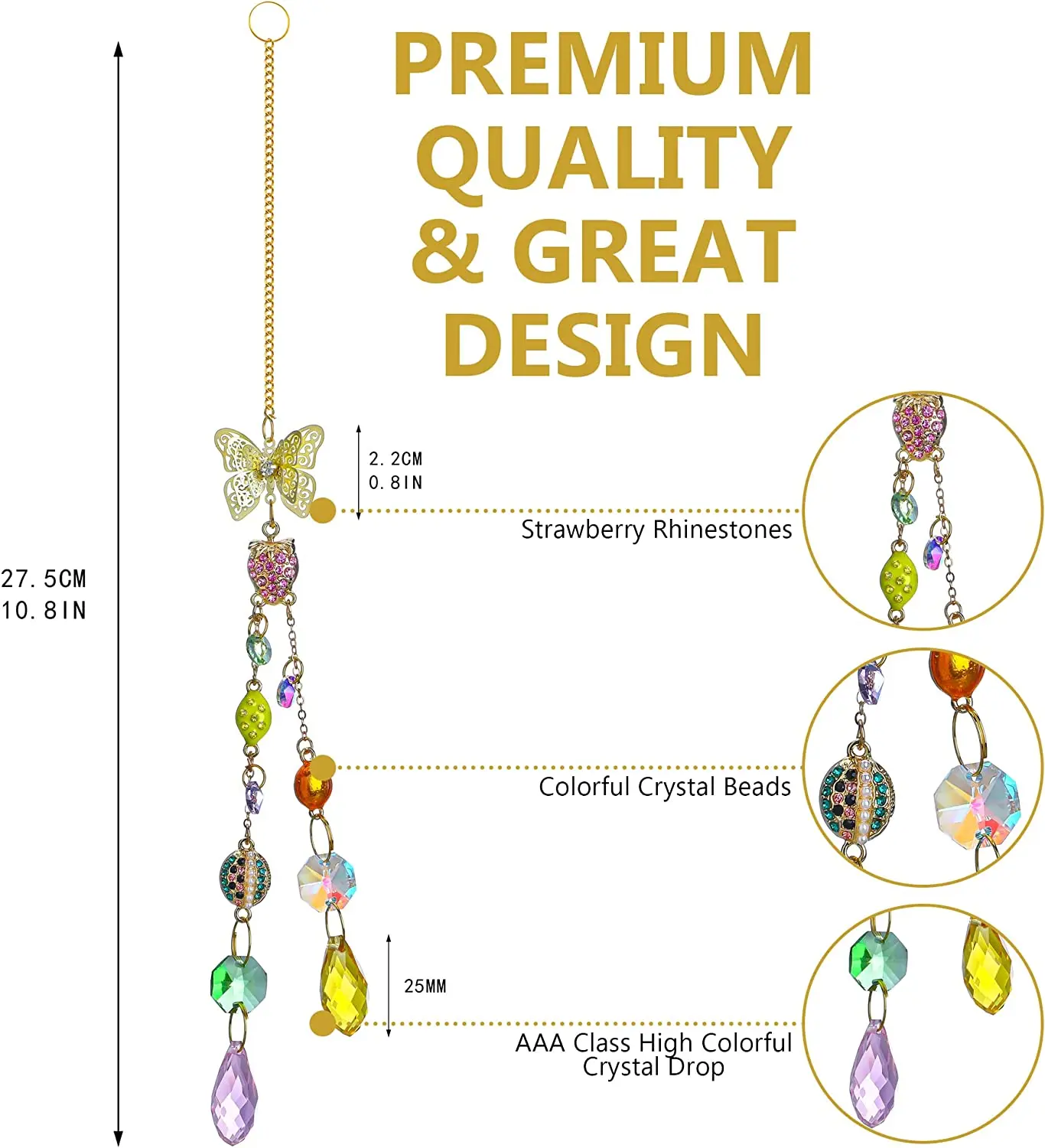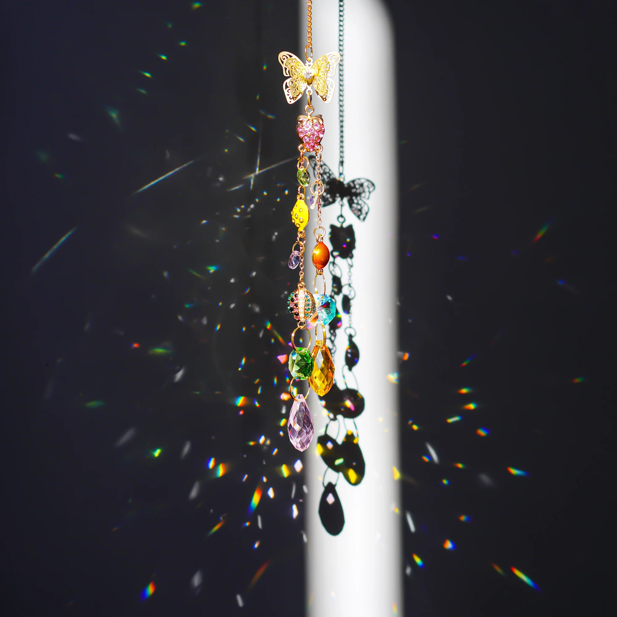 H&D Crystal Strasones Suncatcher Strawberry Pillangó Függő Medálral, Szivárványkészítő Prizmák Suncatchers For Windows Garden