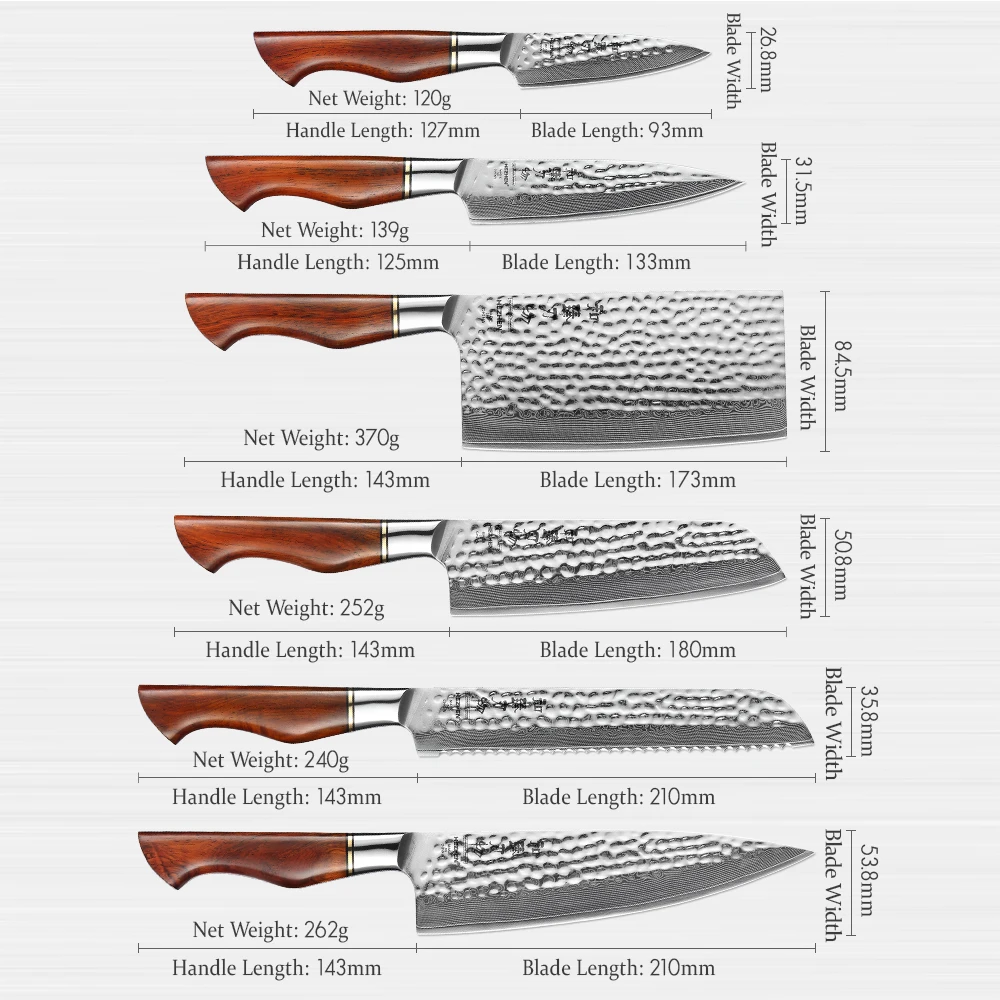Hezhen 1-6Pc Konyhai Késkészlet Szeletelés 73 Rétegű Por Damaszkusz Acél Séf Santoku Nakiri Utility Knivers Főzési Eszközök