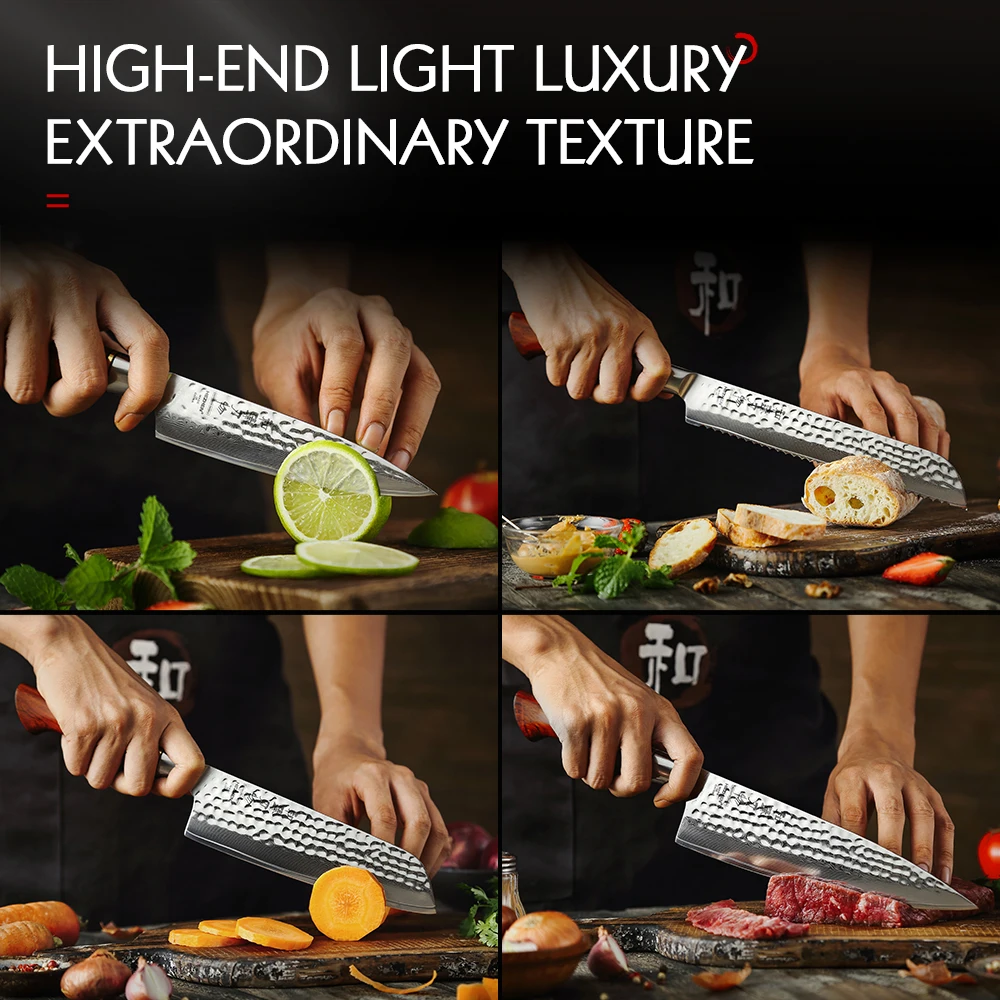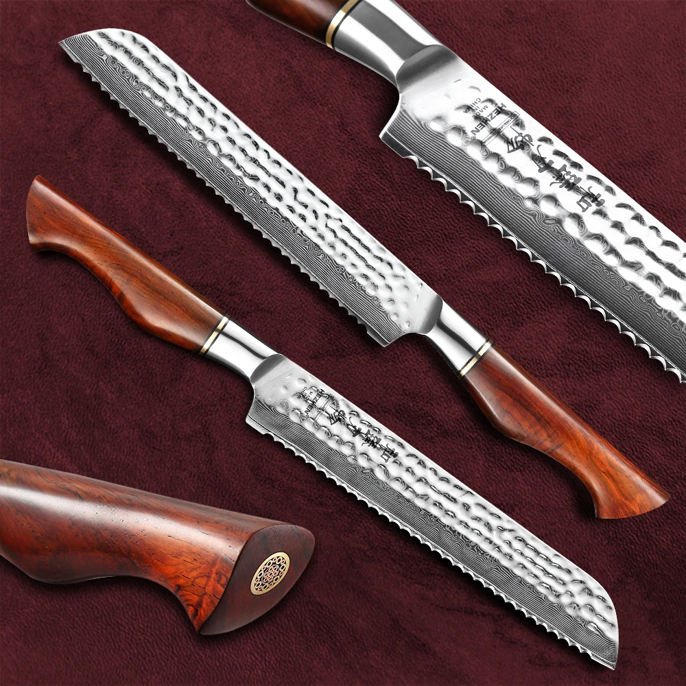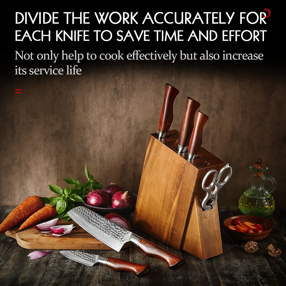 Hezhen 1-7 Db Konyhai Késkészlet Vákuum És Mély Lángkezelés 73 Rétegű Por Damaszkusz Acél Diófélék Kést Tartó