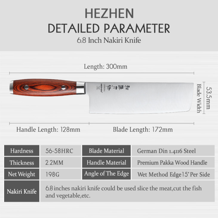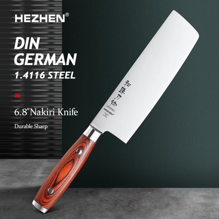 Hezhen 6,8 Hüvelyk Nakiri Kés Német Din1.4116 Rozsdamentes Acél Szegecs Pakka Fa Fogantyú Éles Konyhai Főzési Kések