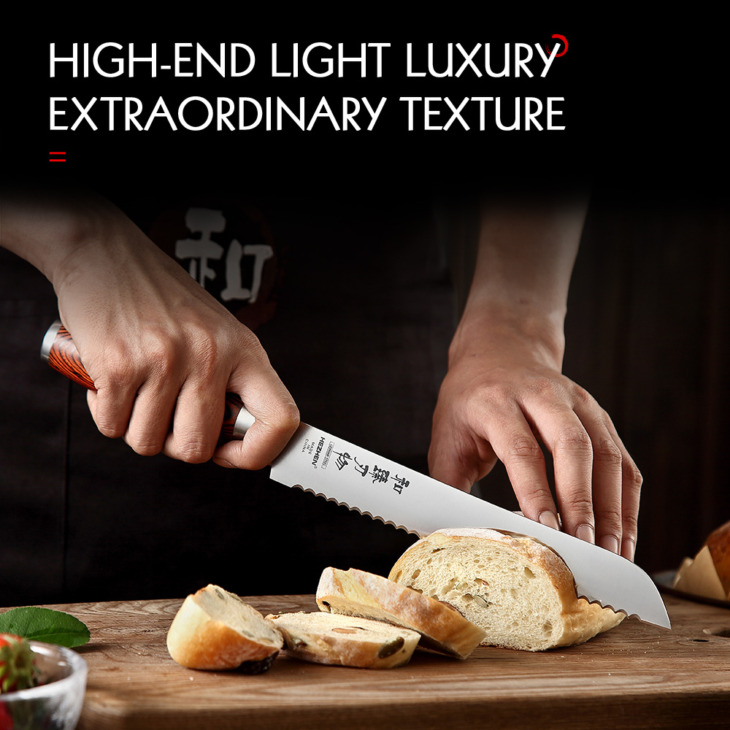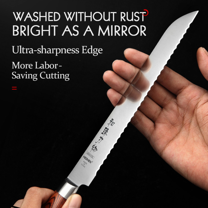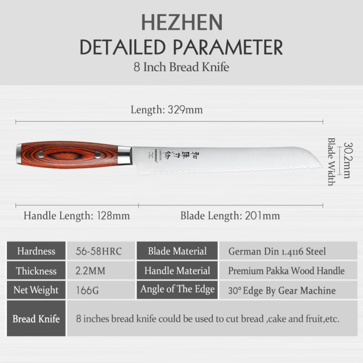 Hezhen 8 Hüvelyk Kenyér Kések Német Din 1.4116 Acél Torta Görögdinnye Pakka Fa Fogantyú És Rozsdamentes Acél Szegecs Konyhai Kés