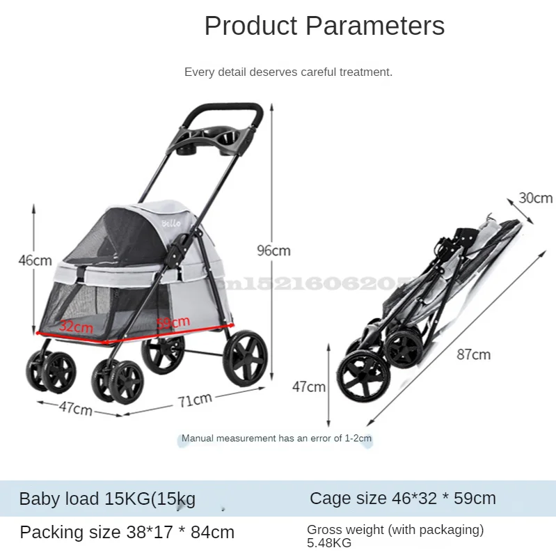 Hiteles Kedvtelésből Tartott Babakocsi -Hordozó 4 Kerekek Kis Kutya És Macskák Szuper Könnyű És Lélegző Oxfordi Kisállat -Babakocsik 15 Kg -Os