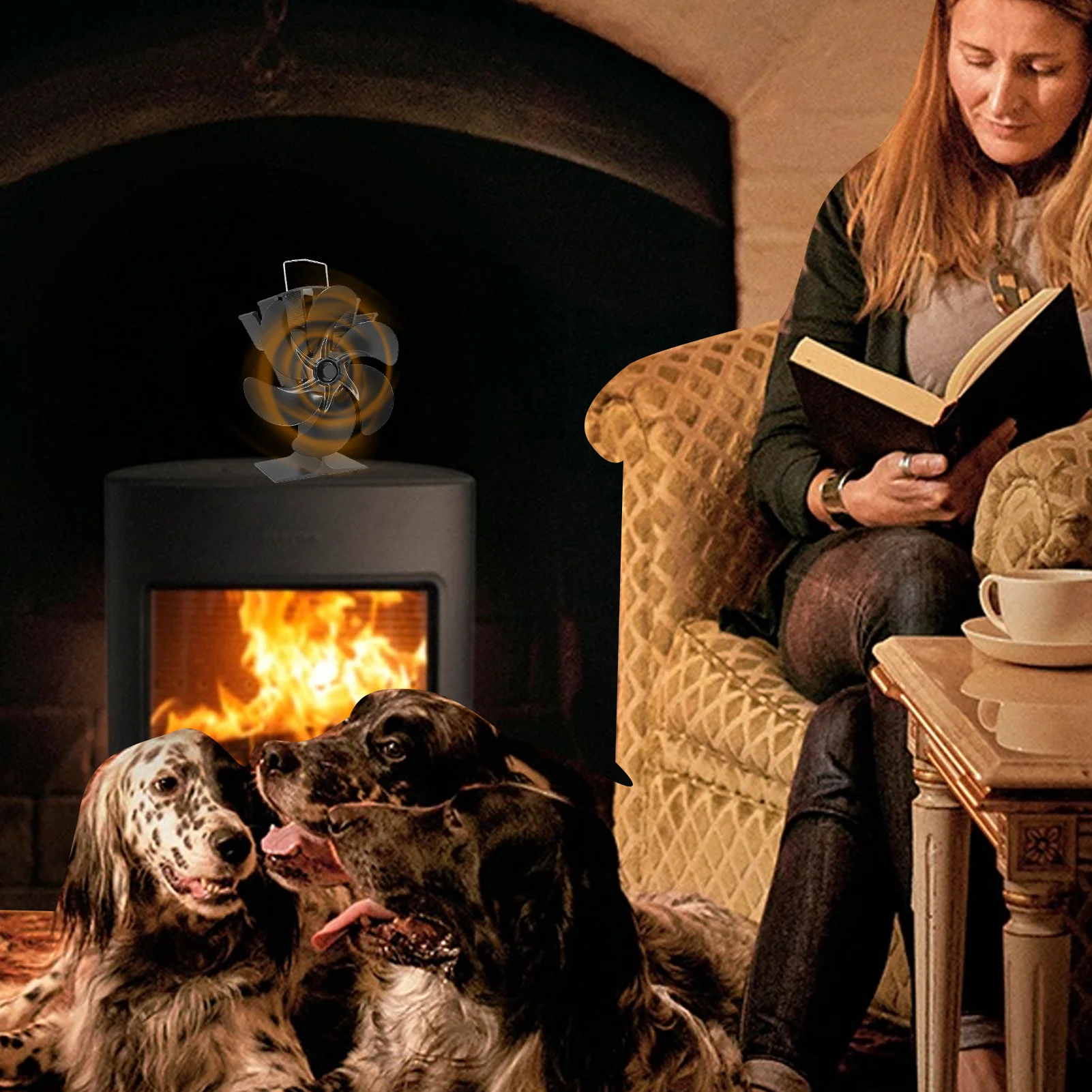 Hőhatású Kályha Ventilátor Termodinamikai Kandalló 6 Pengével Fa Égő Fatörzshez