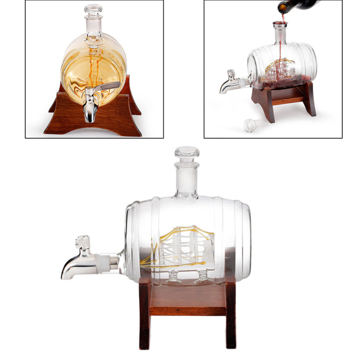 Hordó Dekanter Hajóval 1000 Ml Likőr Adagoló Pecsét Állítható Borlé Palack Öntővel Levegőztető Likőr Öntőbár Kiegészítők