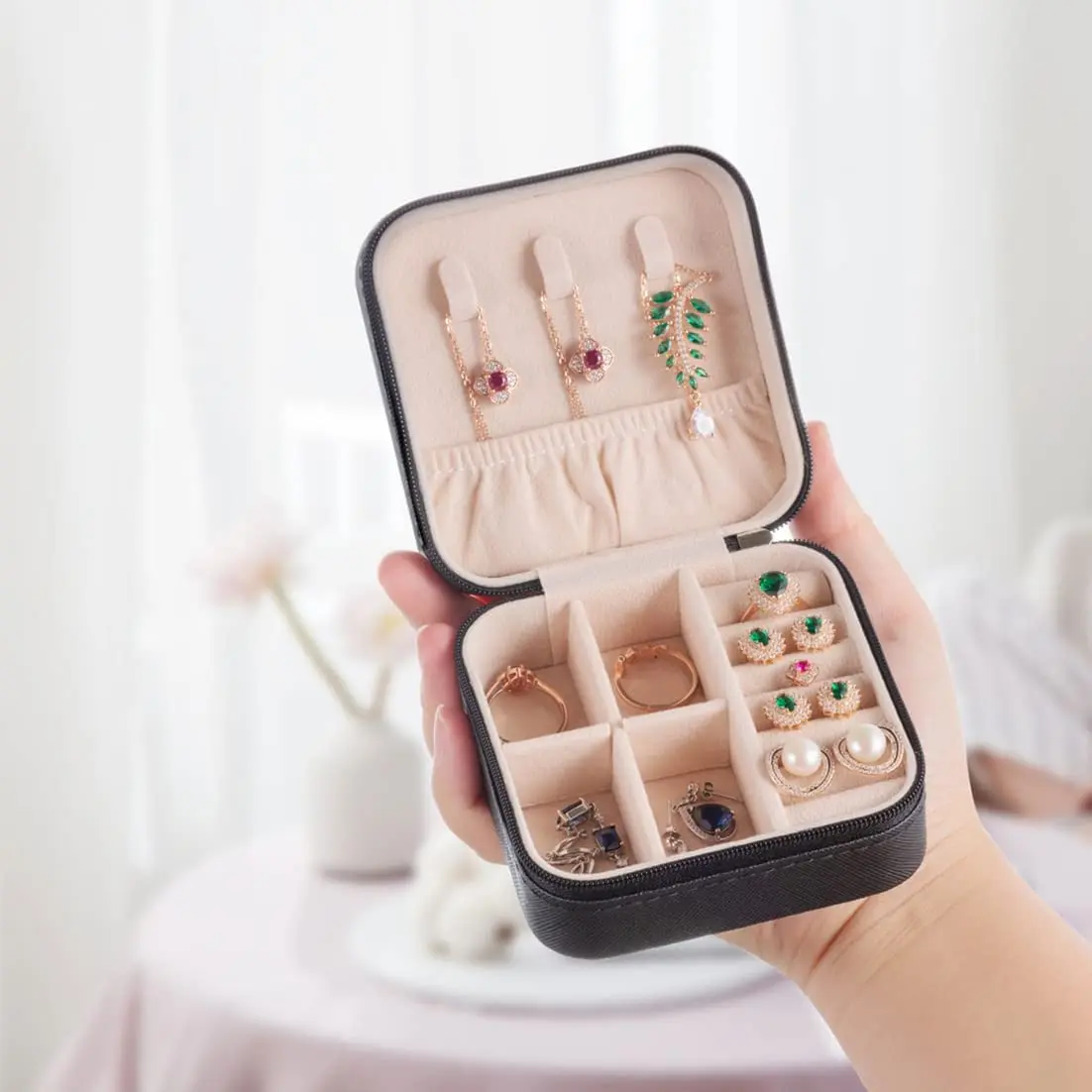 Hordozható Ékszerdoboz Ékszer Szervező Utazási Tok Tároló Dobozok Tartó Bőr Cipzár Ékszerészek Joyero Csomagolás