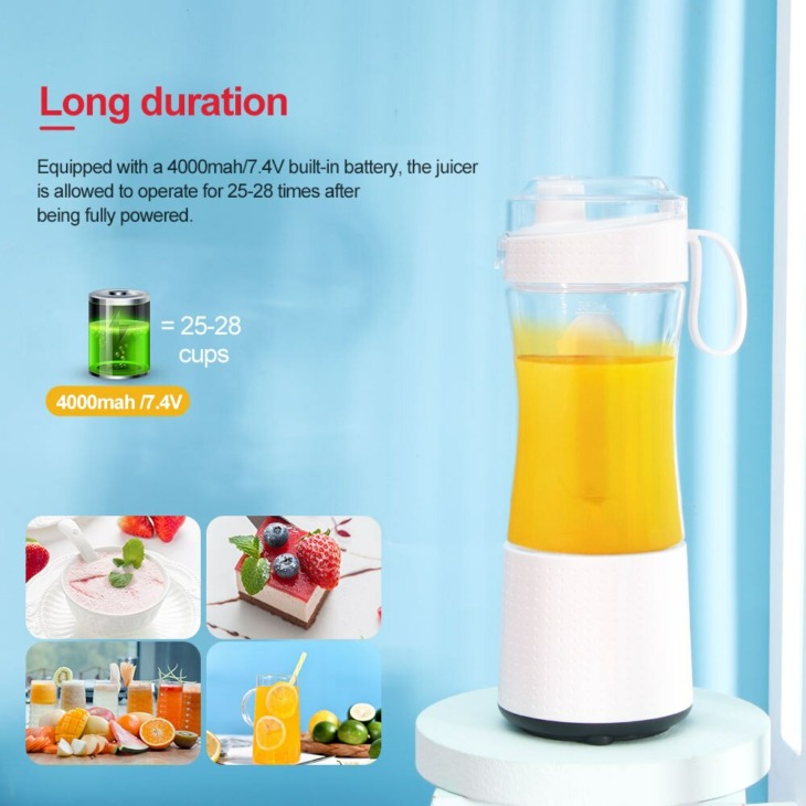 Hordozható Elektromos Gyümölcslé-Kivonó 4 Penge Háztartási Zöldséggel Gyümölcs Mobil Turmixgép 4000 Mah Beépített Akkumulátorral