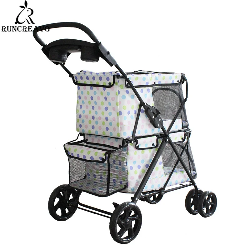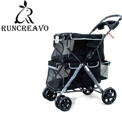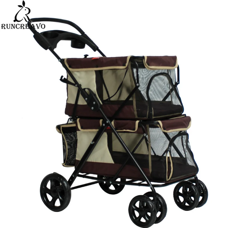 Hordozható, Összecsukható Kettős Rétegű Háziállat-Babakocsi, Nagy Térben, Négykerekű Kettős Kutya Babakocsik Kültéri Utazás