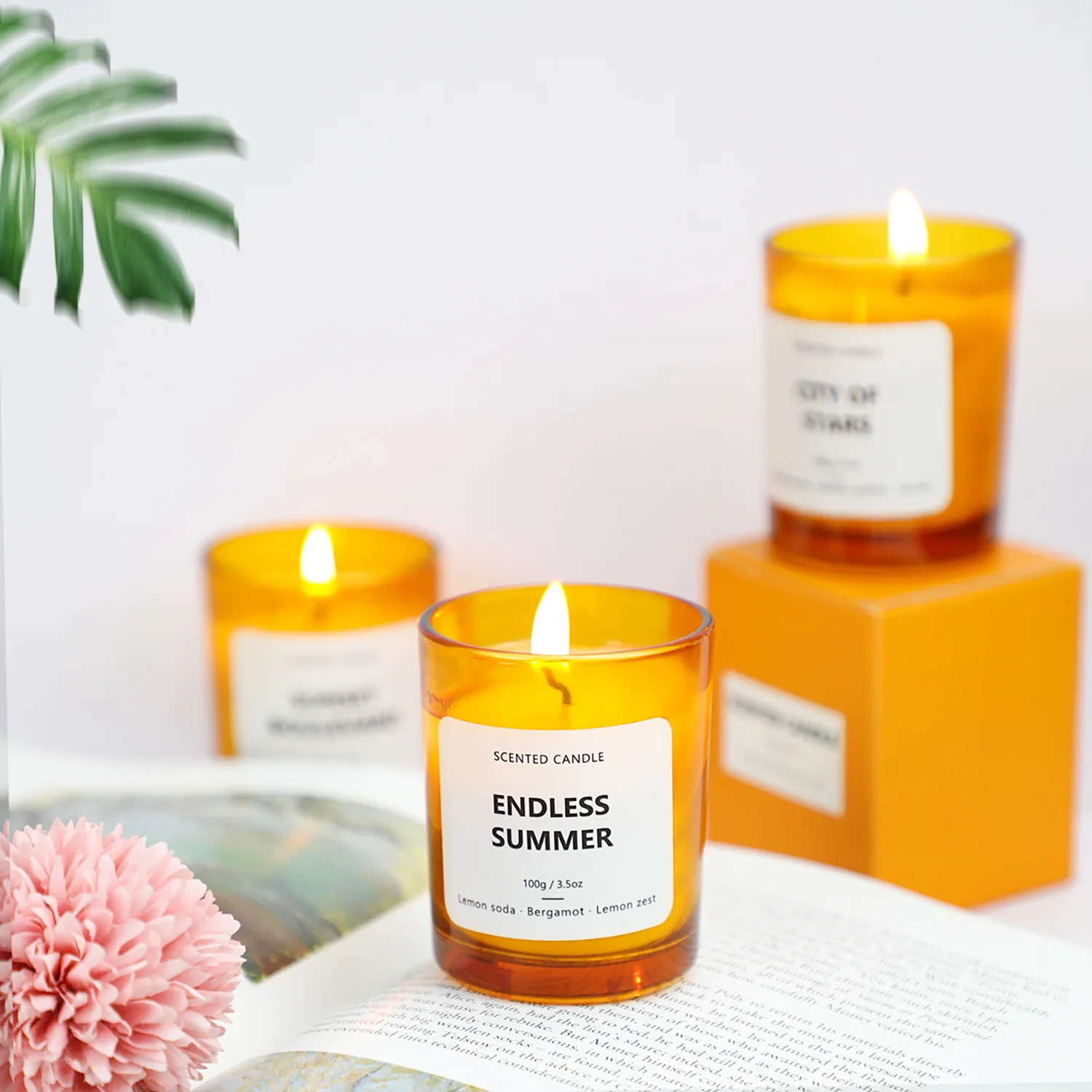Illatos Gyertyák Edény Borostyán Narancssárga Csésze Természetes Tartós Füst Nélküli Égő Fürdő Stressz Megkönnyebbülés Kézzel Készített Ajándékok