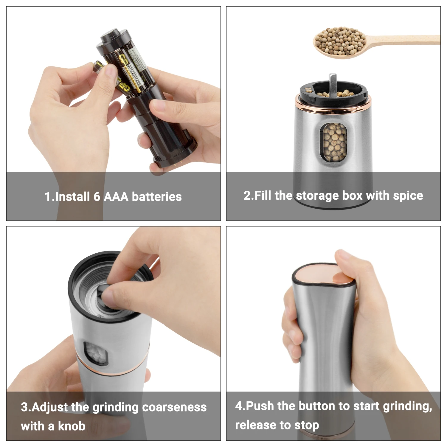 Inkbird Elektromos Malom, Konyhai Só És Bors Daráló, Egykezes Működés, Állítható Durvaság Edények Szerszáma