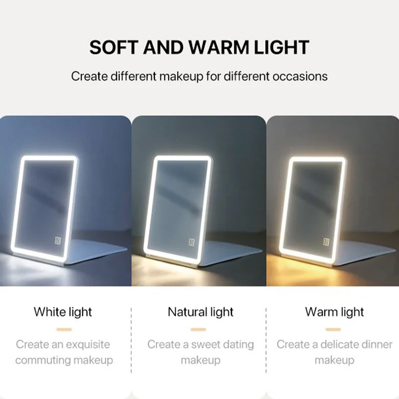 Intelligens Hajtogató Led Smink Tükör Érintőképernyő 180 Fokos Forgó Kozmetikai Usb Töltőállvány