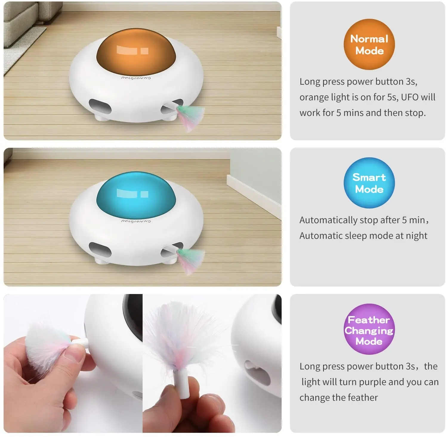 Interaktív Elektronikus Macskajáték Beltéri Macskákhoz Forgó Toll Ufo-Val (Okos Alacsony Zaj