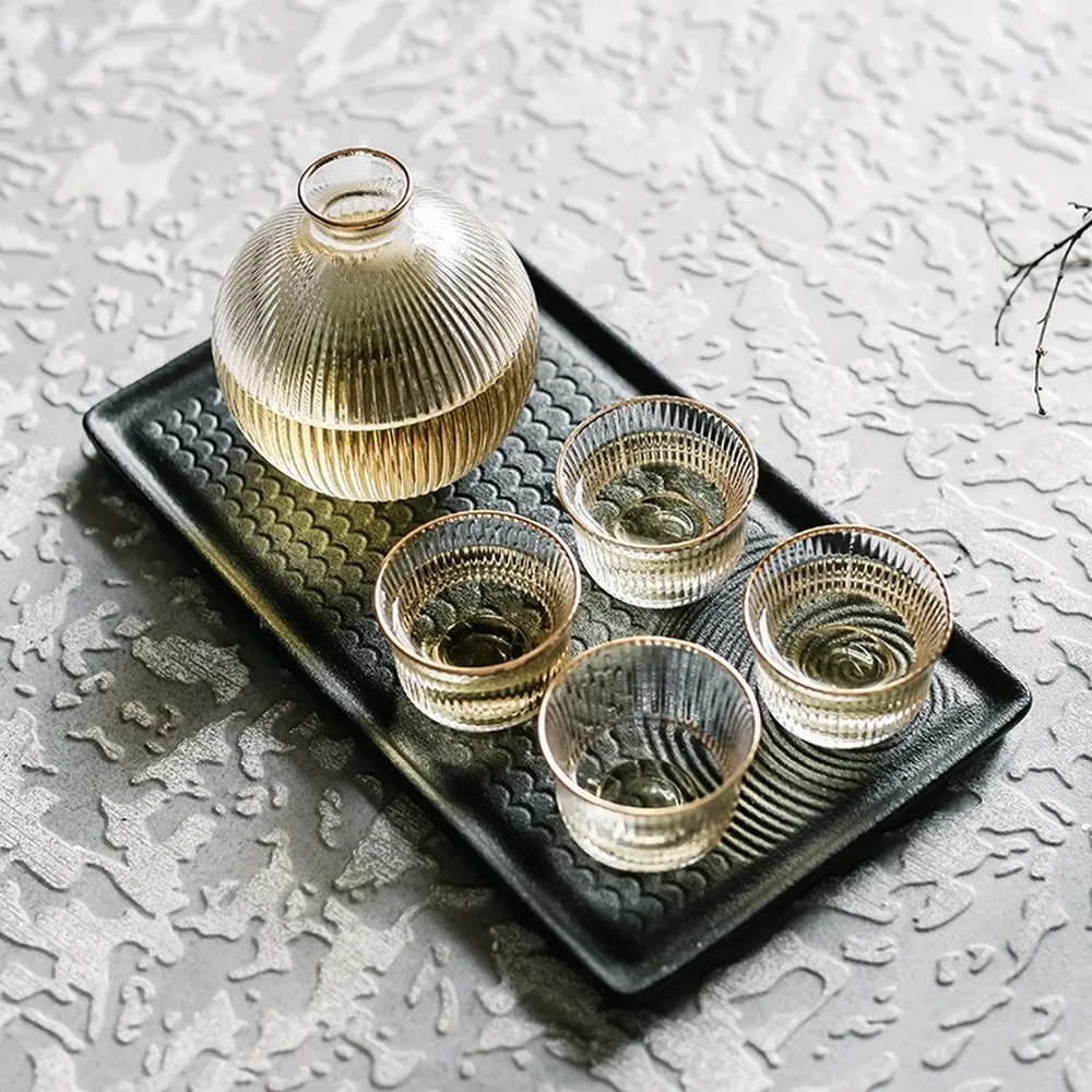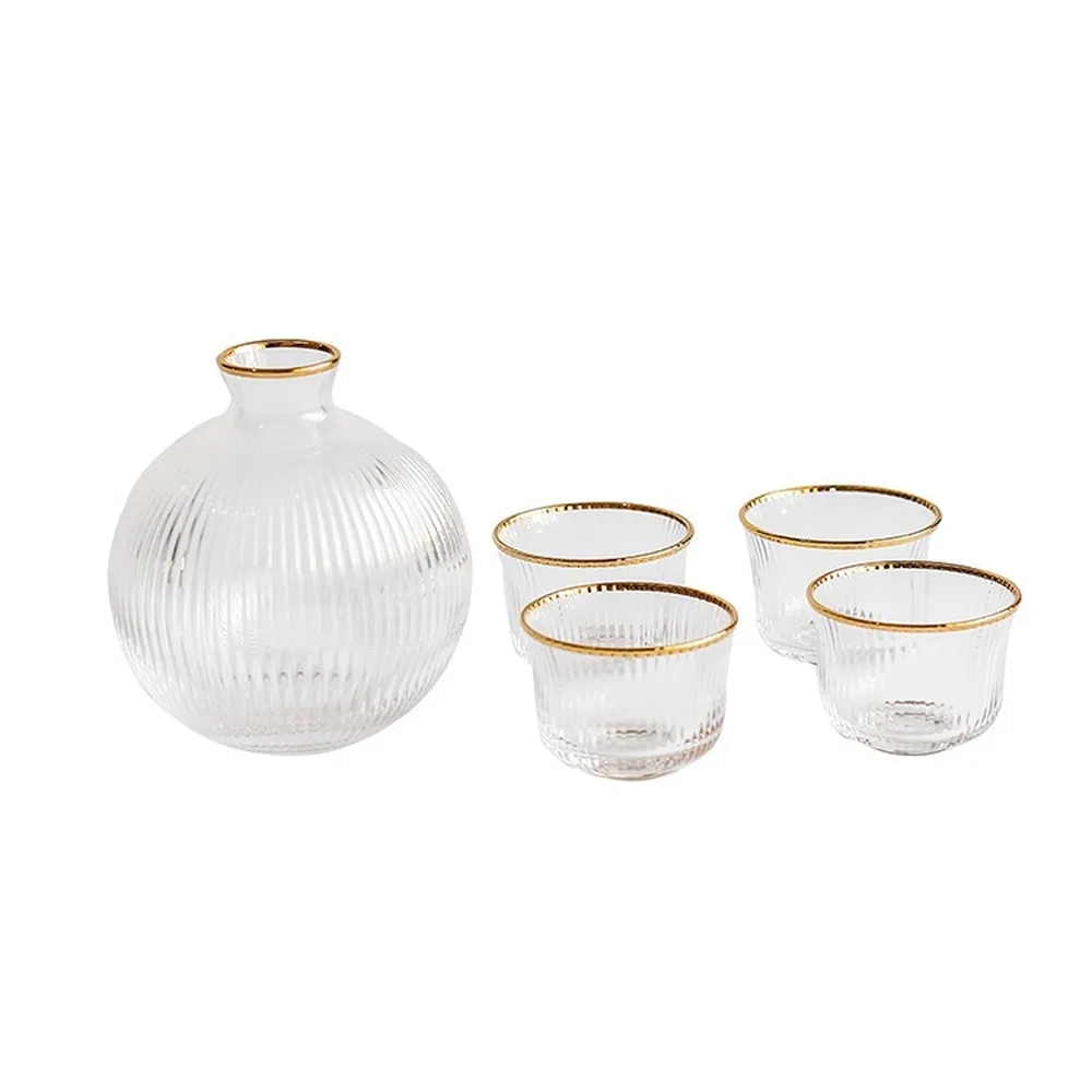 Japán 5Dic/Set Kedvéért Palack Átlátszó Arany Széle Üveg Fehér Boros Palack Háztartási Likőr Poharak Szett Bárware