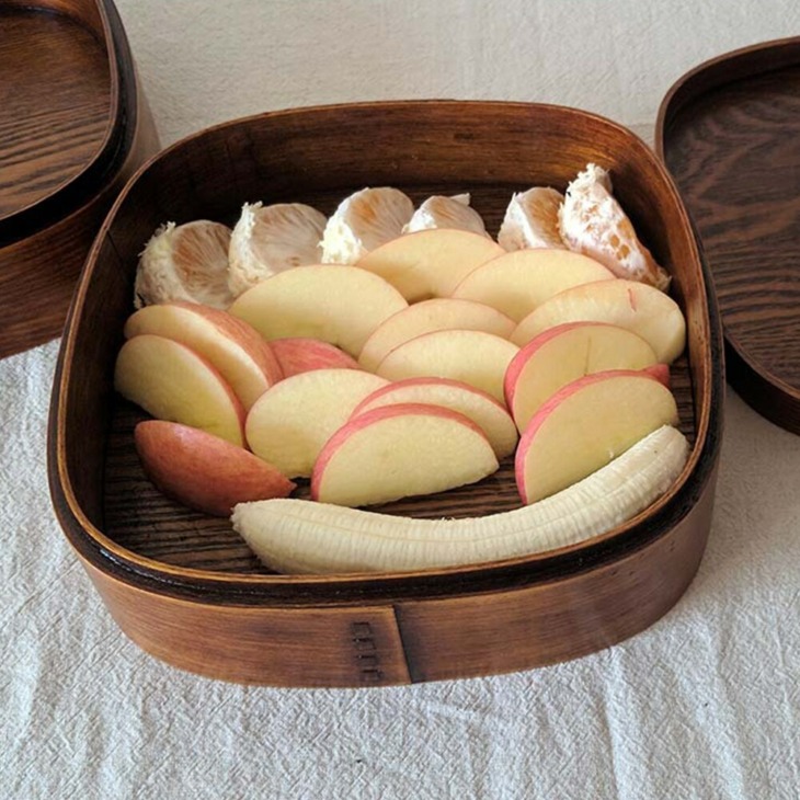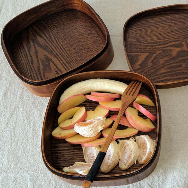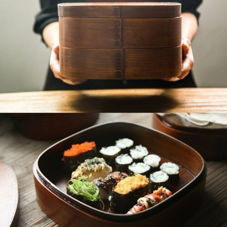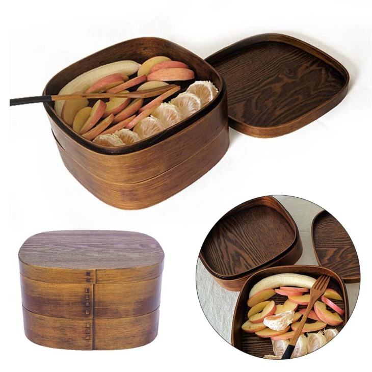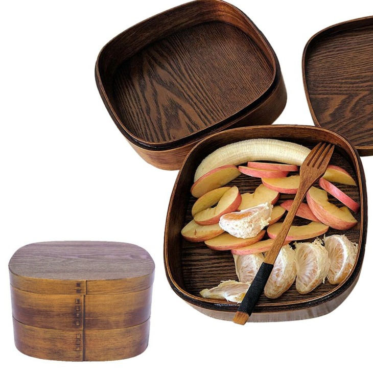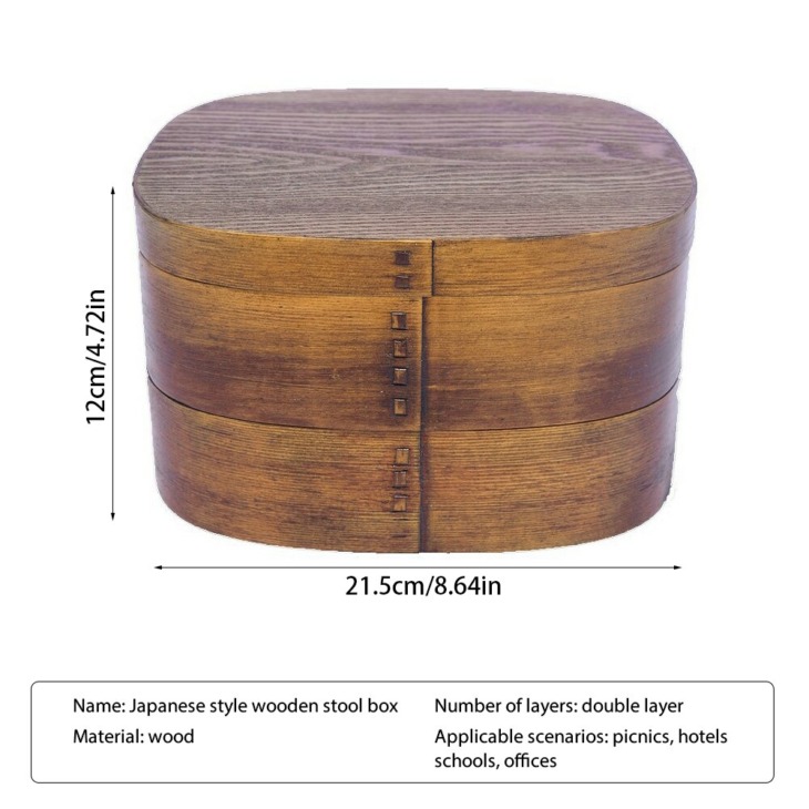 Japán Fa Ebéddoboz Piknik Bento Box Diák Kettős Réteg Kanálvillával Asztali Edények Sushi Étel Konténer