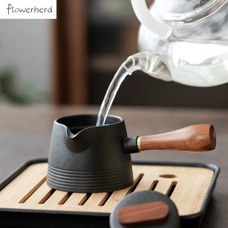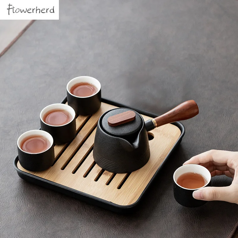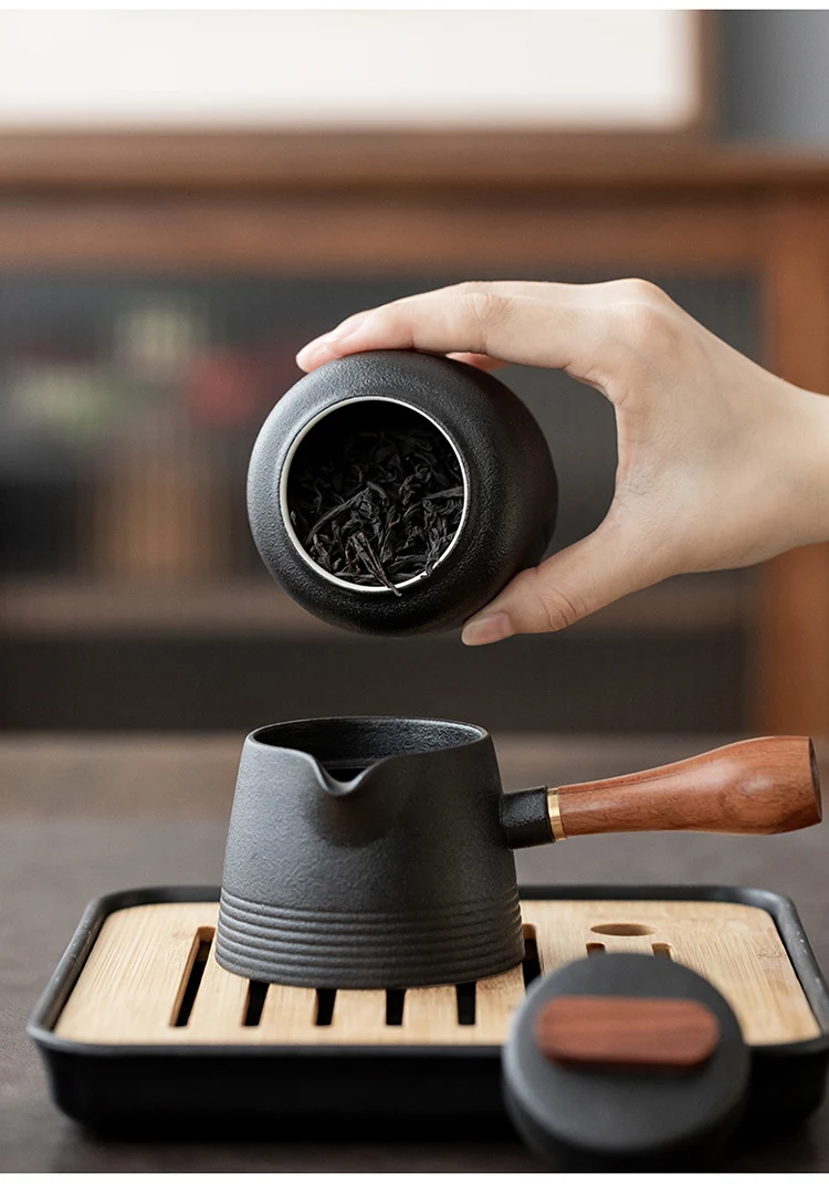 Japán Kerámia Kung Fu Tea Teamária Tea Tea Tea Tea Caddy Fekete Kerámia Porcelán Tea Edény És Csésze Háztartási Teáskanna Teáskanna