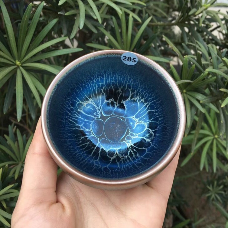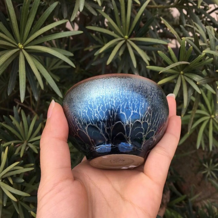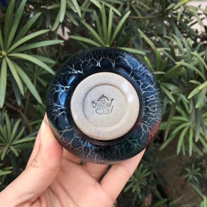 Jianzhan Kék Olajfolt Jian Ware Tea Bowl Porcelán Ceremic Ókori Dal Dinasztia Kézműves Ázsiai Kínai Antik Kollekció
