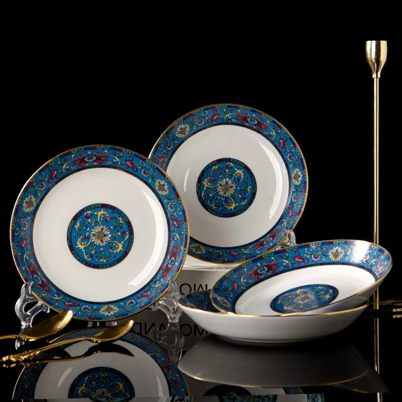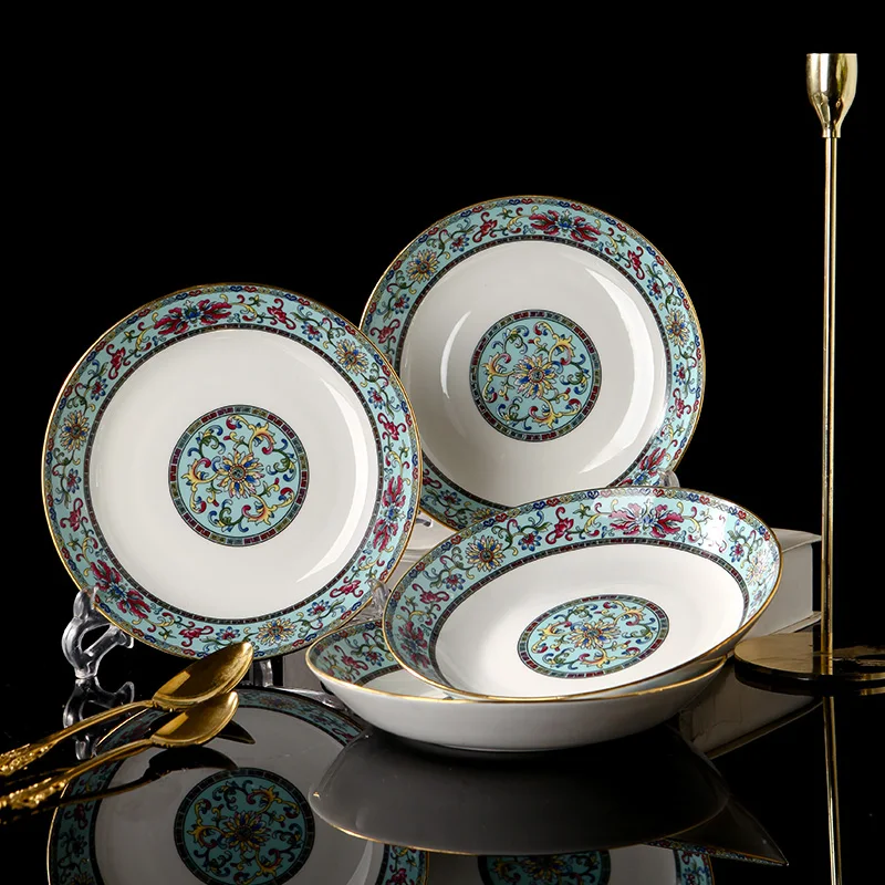 Jingdezhen Kínai Stílusú Zománc Tányér Csontlemez Luxus Bíróság Kerámia Vacsora Tányérok