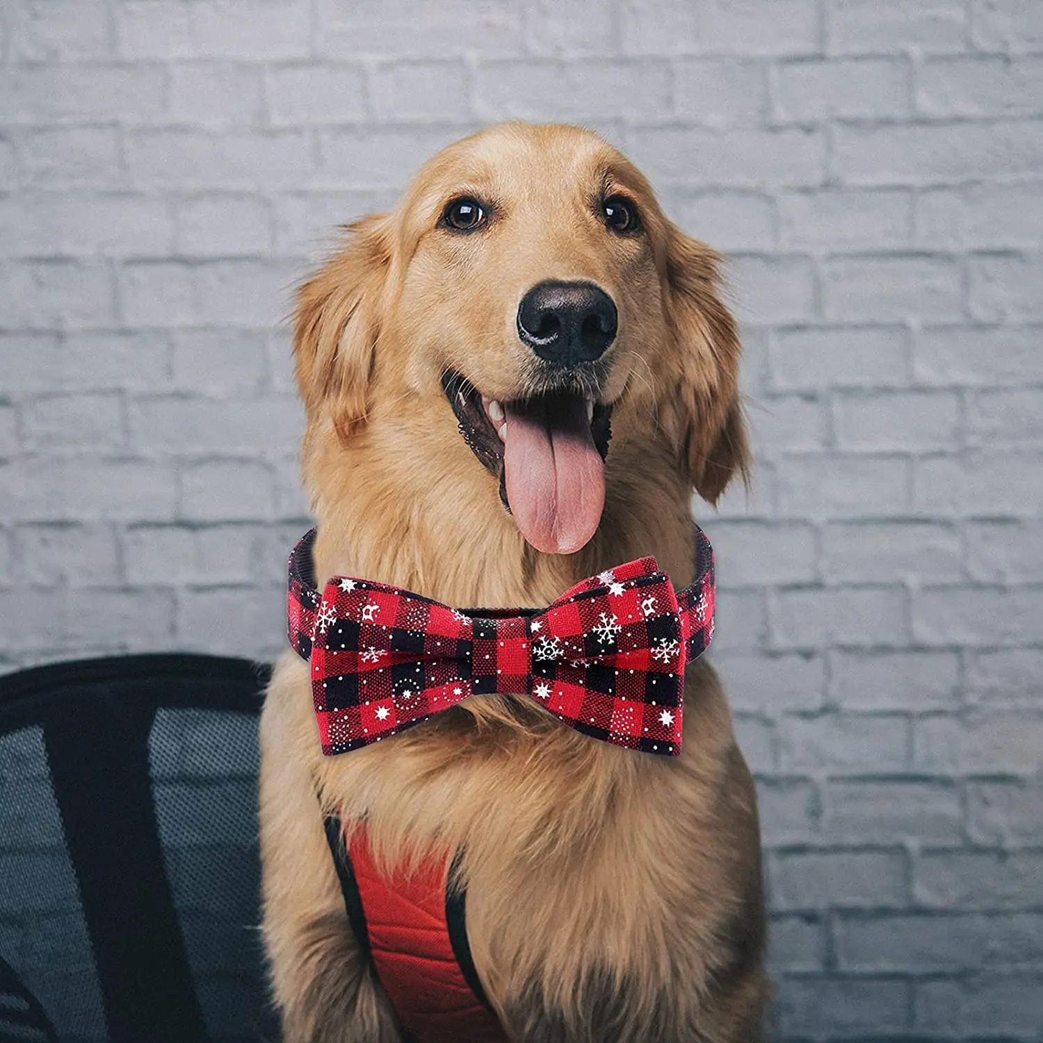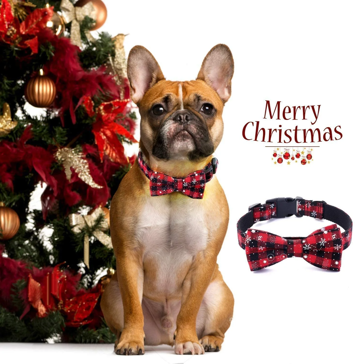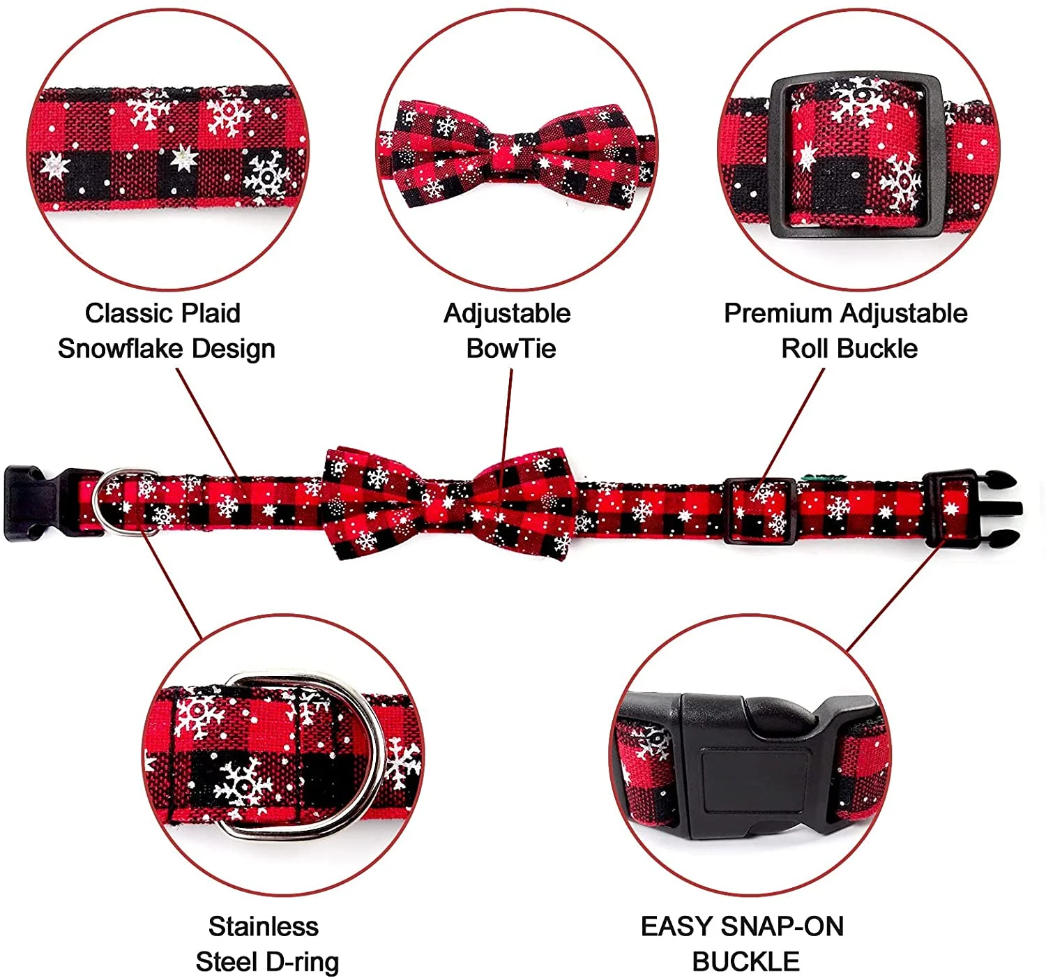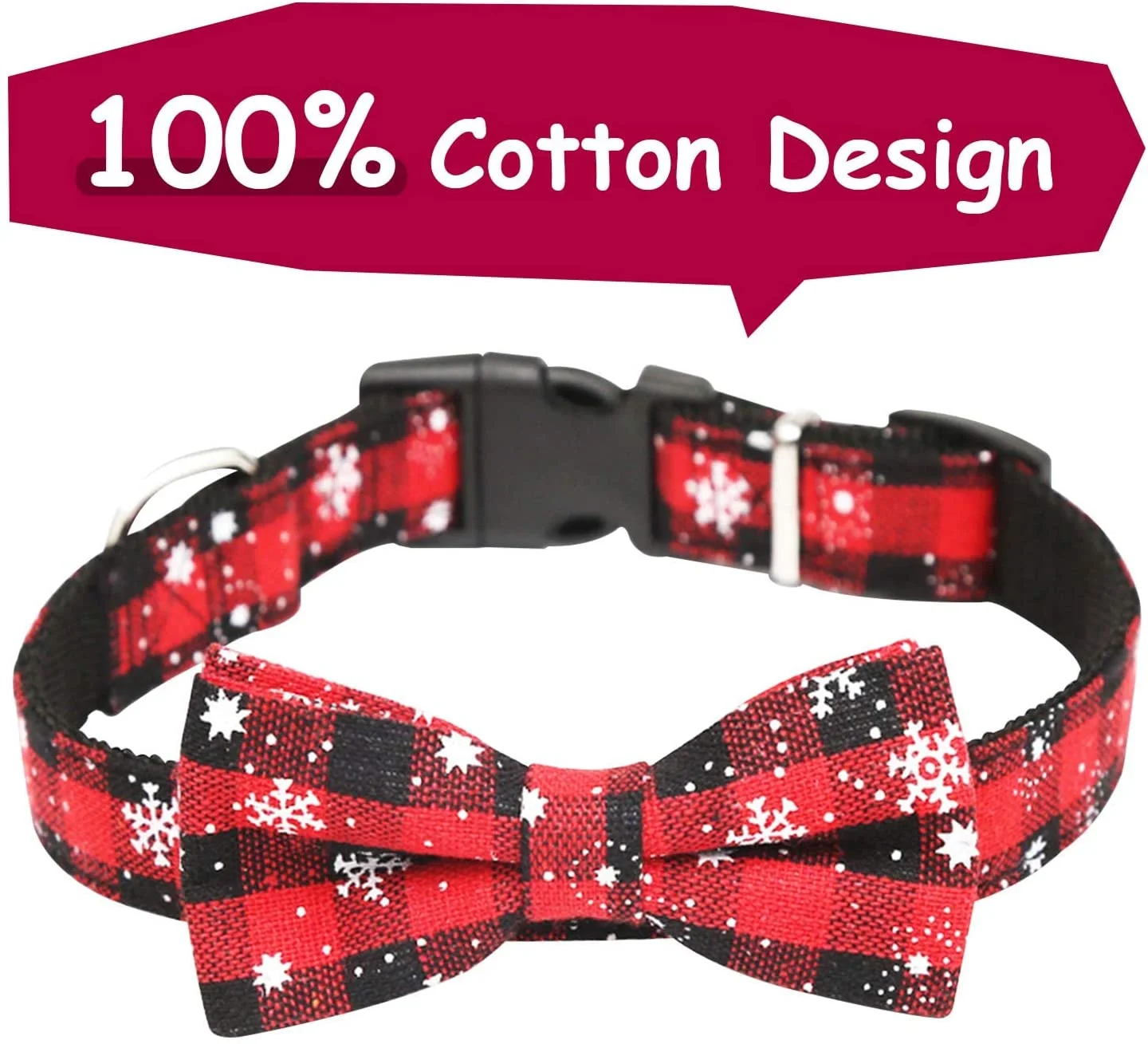 Karácsonyi Kutya Gallér Csokornyakkendővel, Állítható Puha Pamut Klasszikus Kockás Hópehely -Kisállat -Gallér Legjobb Ajándék A Kis Közepes Nagynak