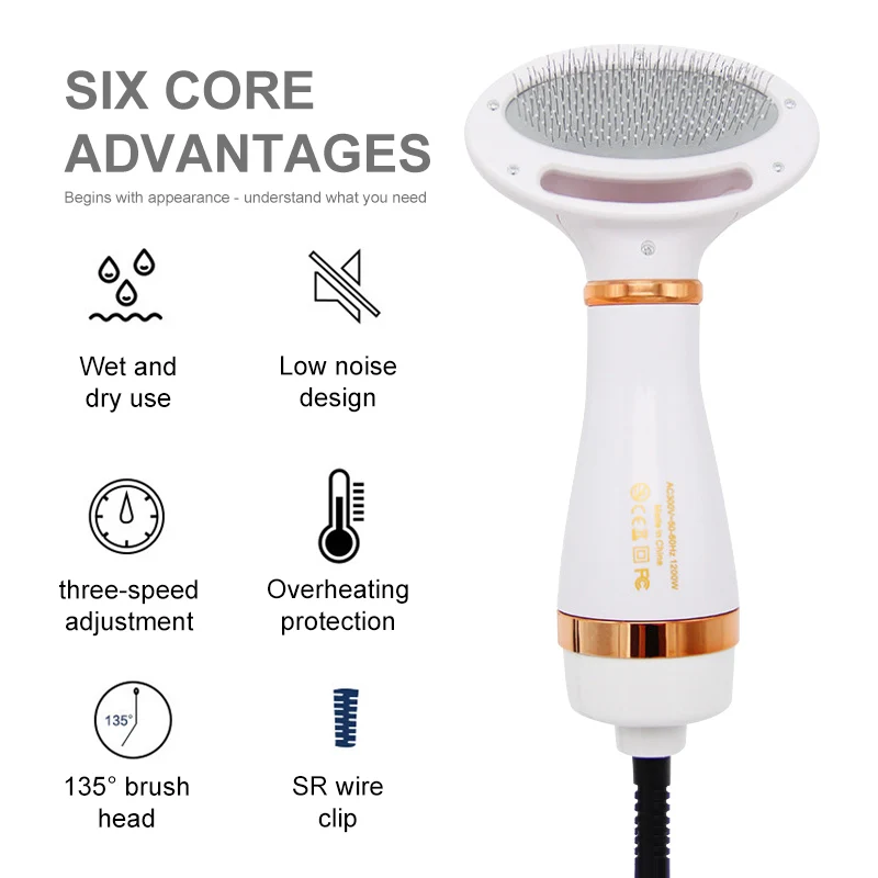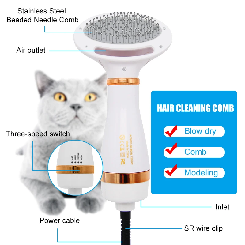 Kedvtelésből Tartott Kutya Hajszárító 2-In-1 Macskás Kutya Szárító Ápolás És Gondozás Állítsa Be A Hőmérsékletet Az Alacsony Zajú Kisállat Kefe Hosszú És Rövid Kutya Kellékekhez