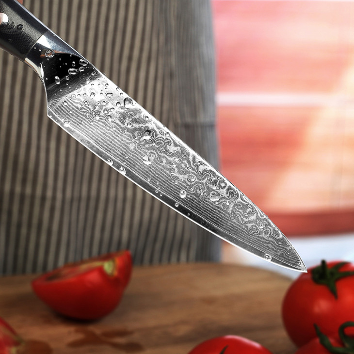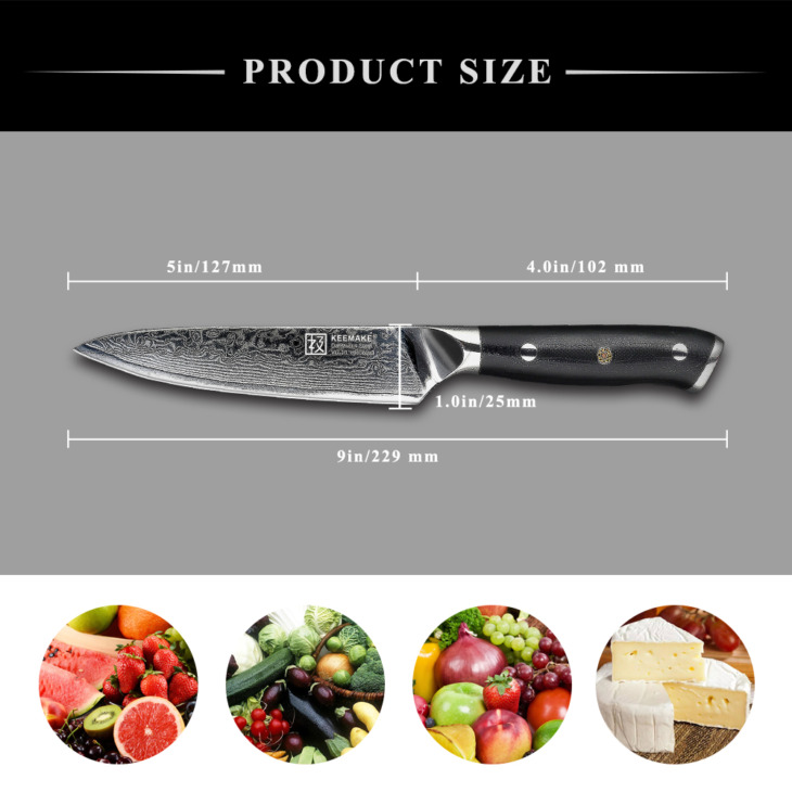 Keemake 5 Hüvelykes Segédprogram Séf Kés Konyhai Kések Japán Damaszkusz Vg10 Acél Főző Vágószerszámok Éles Penge Erős G10 Fogantyú
